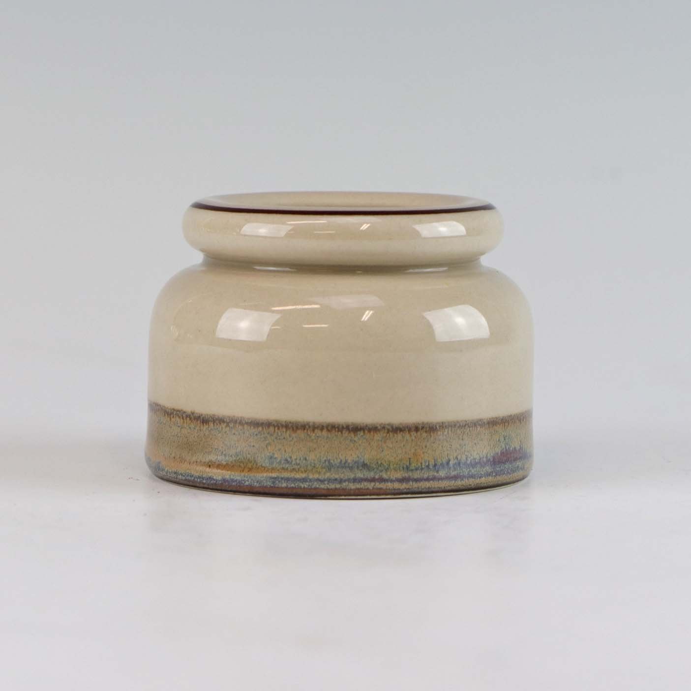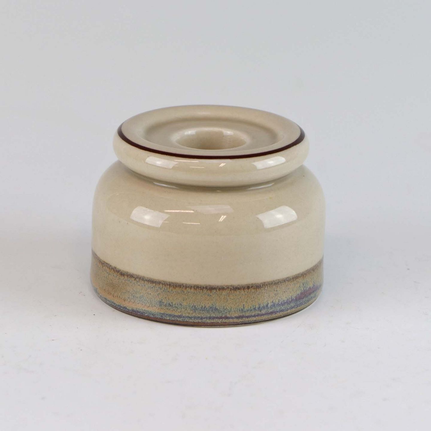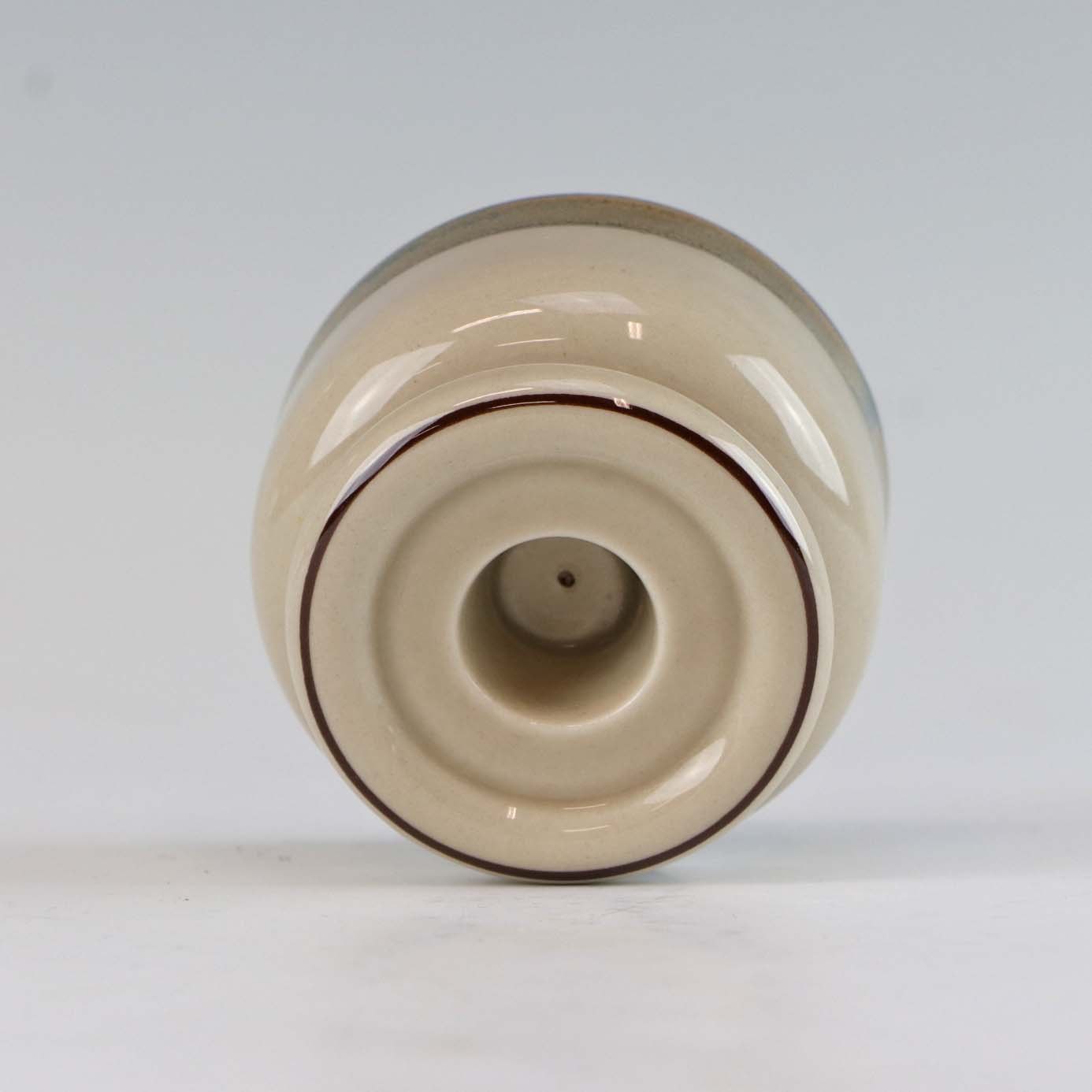 Stellet Peru er af stentøj, glaseret med lys grå farve og dekoreret med bånd af grøn/brunlige farve