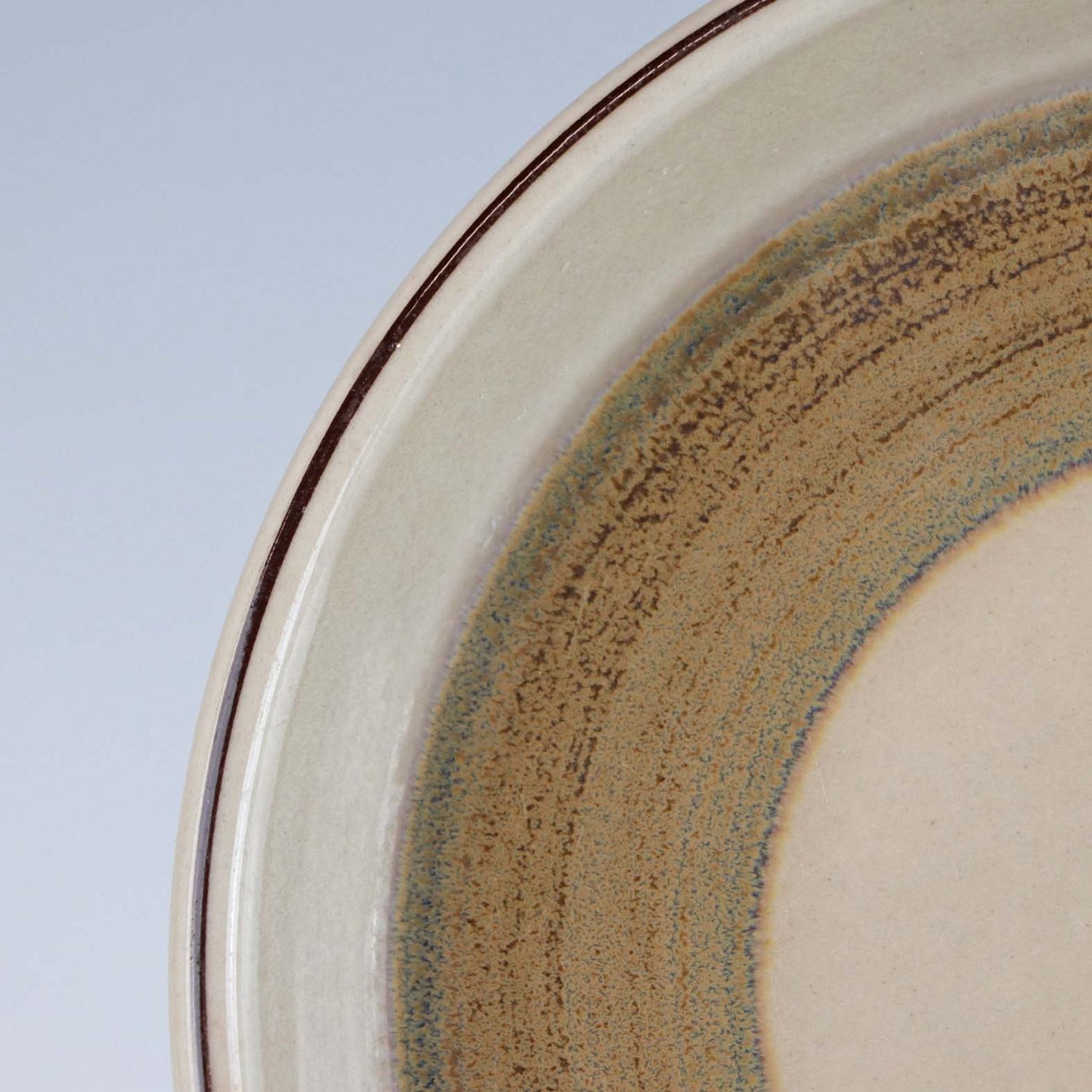 Stellet Peru er af stentøj, glaseret med lys grå farve og dekoreret med bånd af grøn/brunlige farve