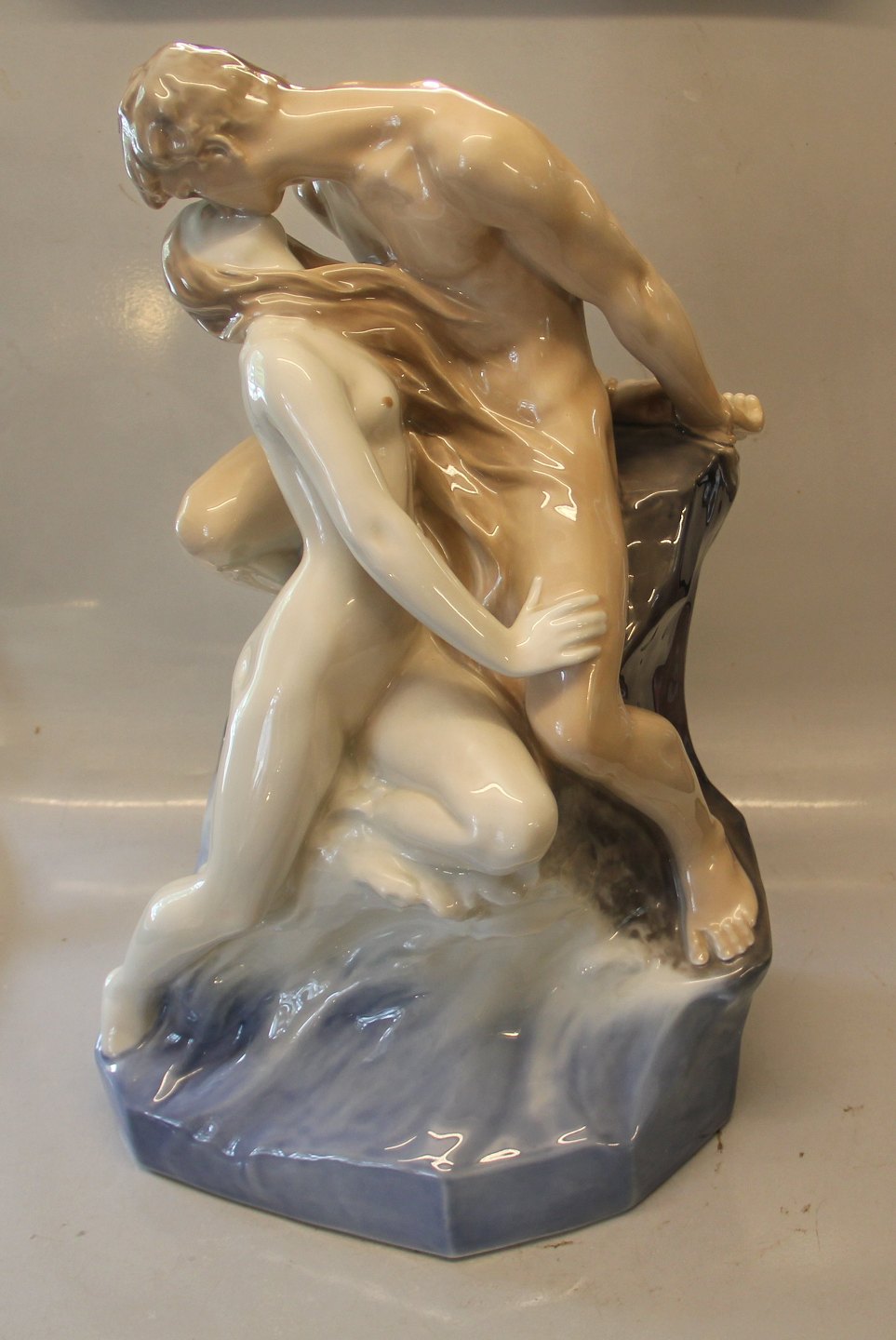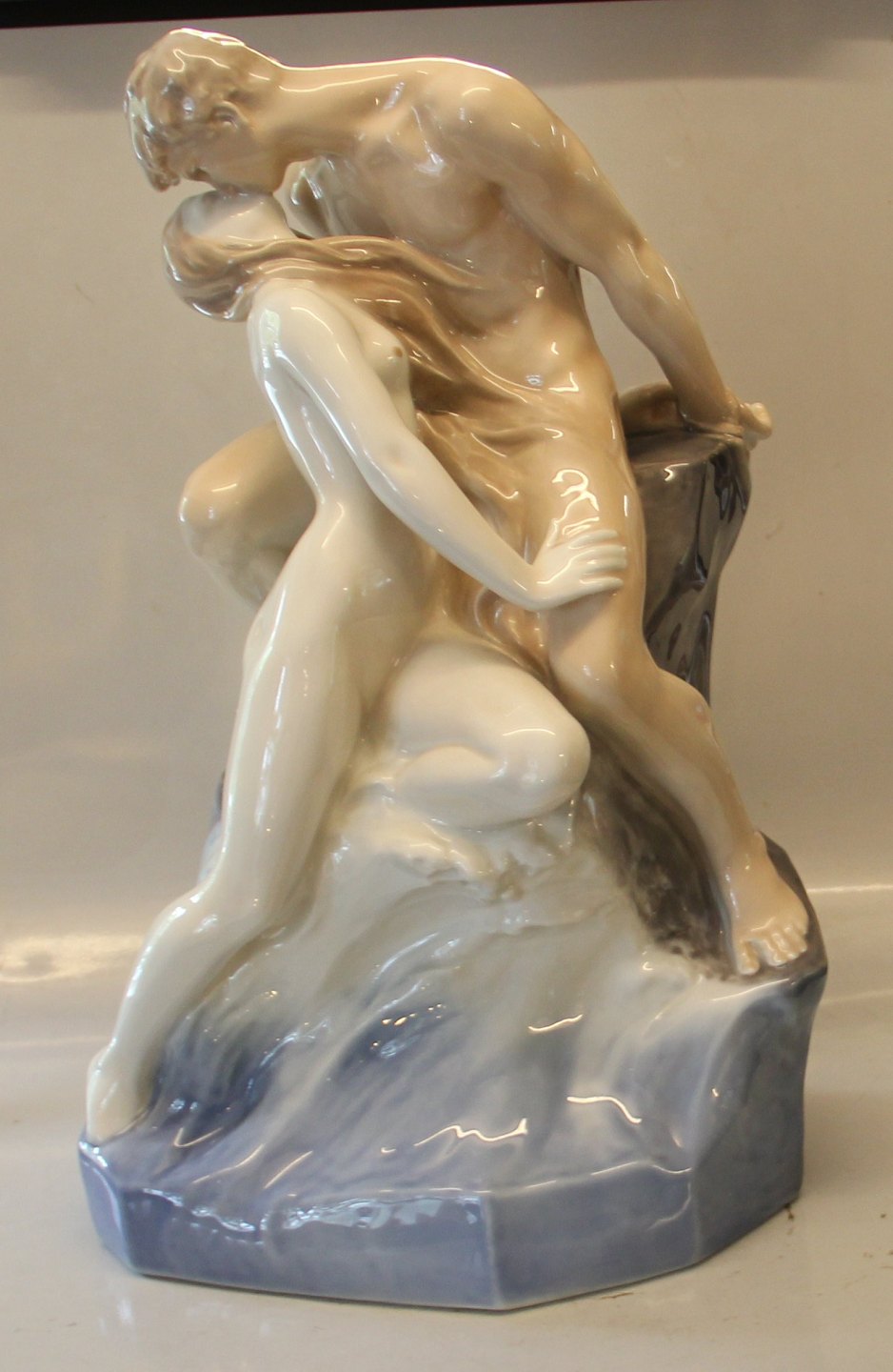 Kgl. figur fra Royal Copenhagen. 1132 RC Theodor Lundberg Bølge og Strand 46 cm 1897 I hel og fin stand Kys og Bølgeskvulp