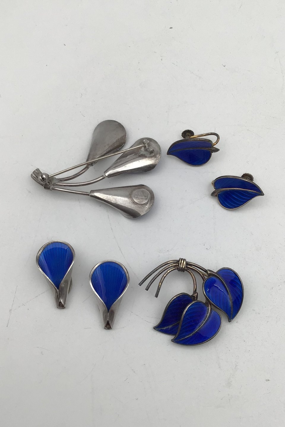 J Tostrup, Norge Sterling Sølv Emalje Smykkesæt (Broche + Øreringe)