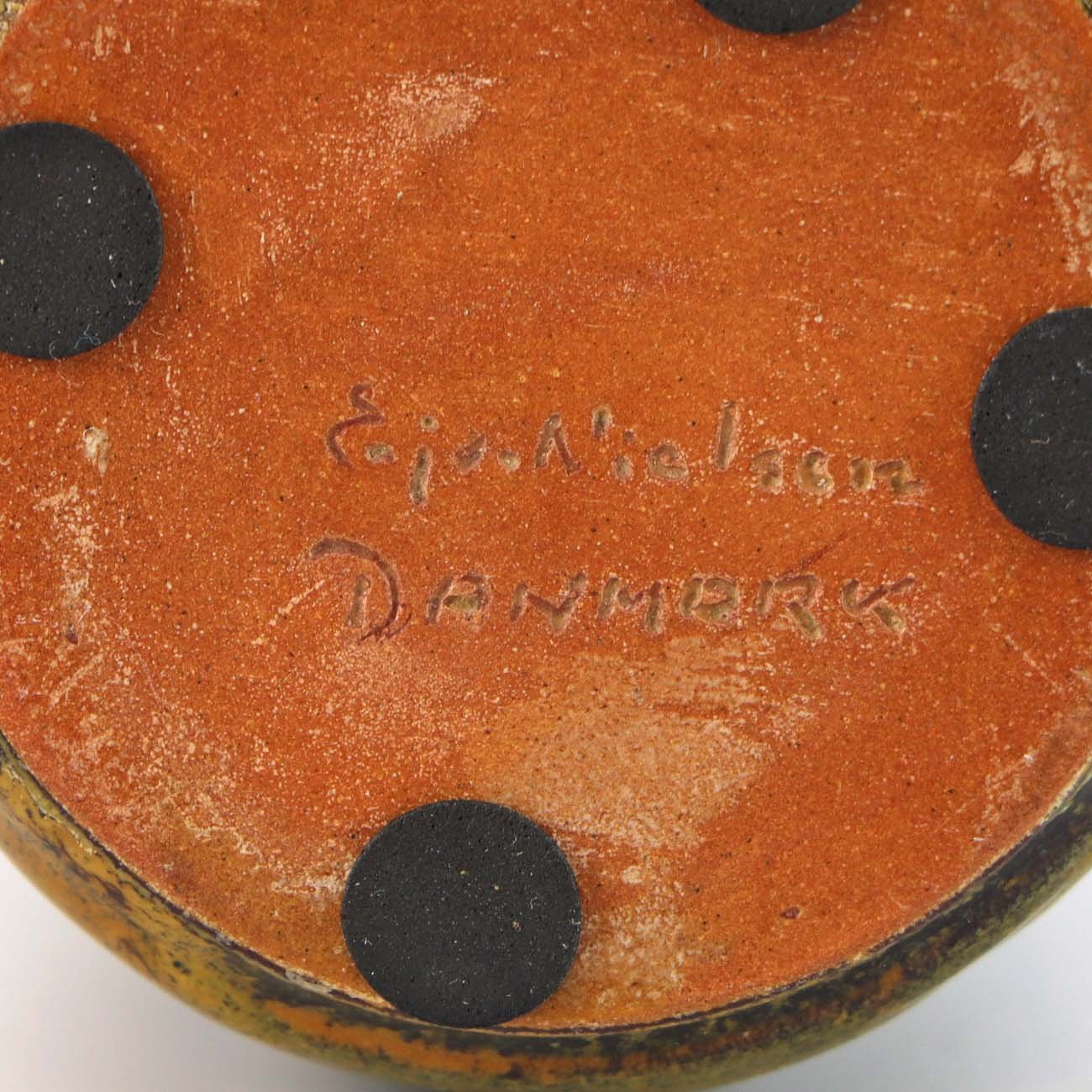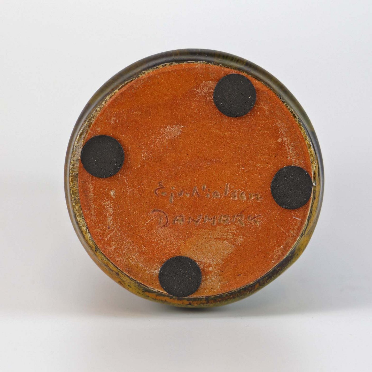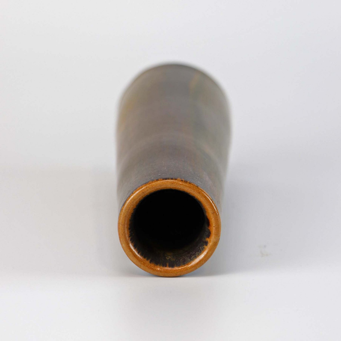 Høj og slank vase af stentøj i brun og rødgyldne nuancer