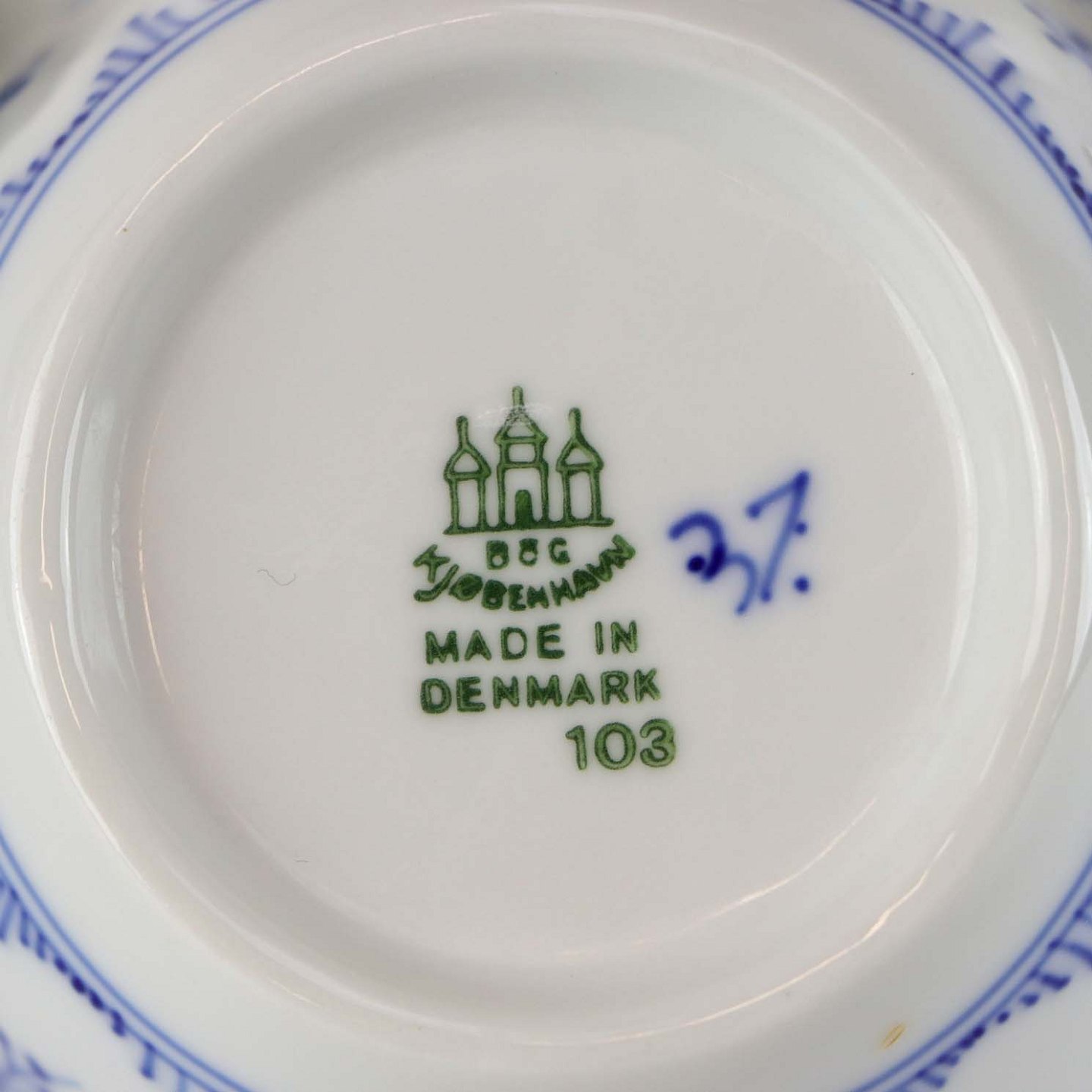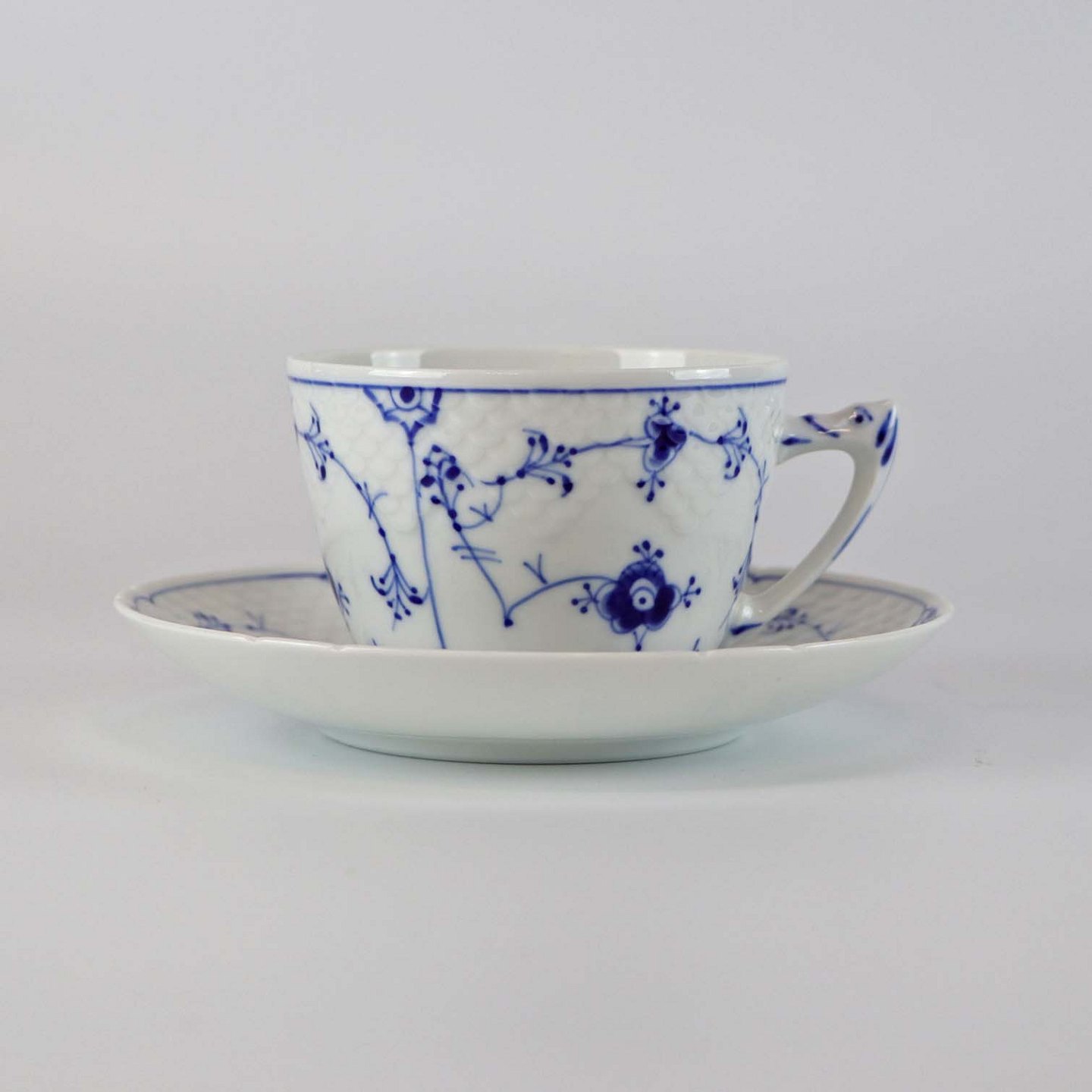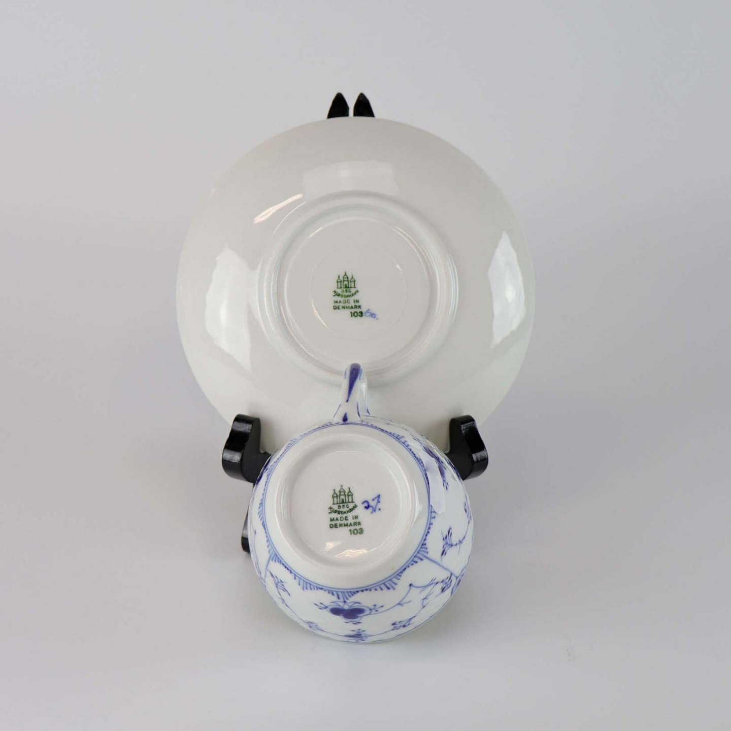 Kop med underkop i porcelæn fra stellet Blåmalet. No 103