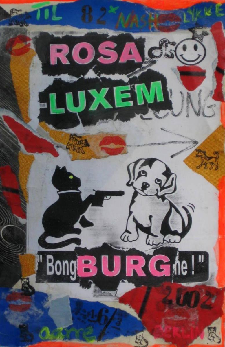 Proveniens.: Drakabyggets Kunstsamling, Sverige. På bagsiden følgende beskrivelse.: Hip hip Hurra for Jørgen Søvrøver 16.3.2002. Rosa Luxemburg er Rosa. Hurra også til Lis Havfrue. De kærligste hilsner på din fødselsdag som også blev min mærkesdag 2 gange fra Mette i Gyvelsboda.