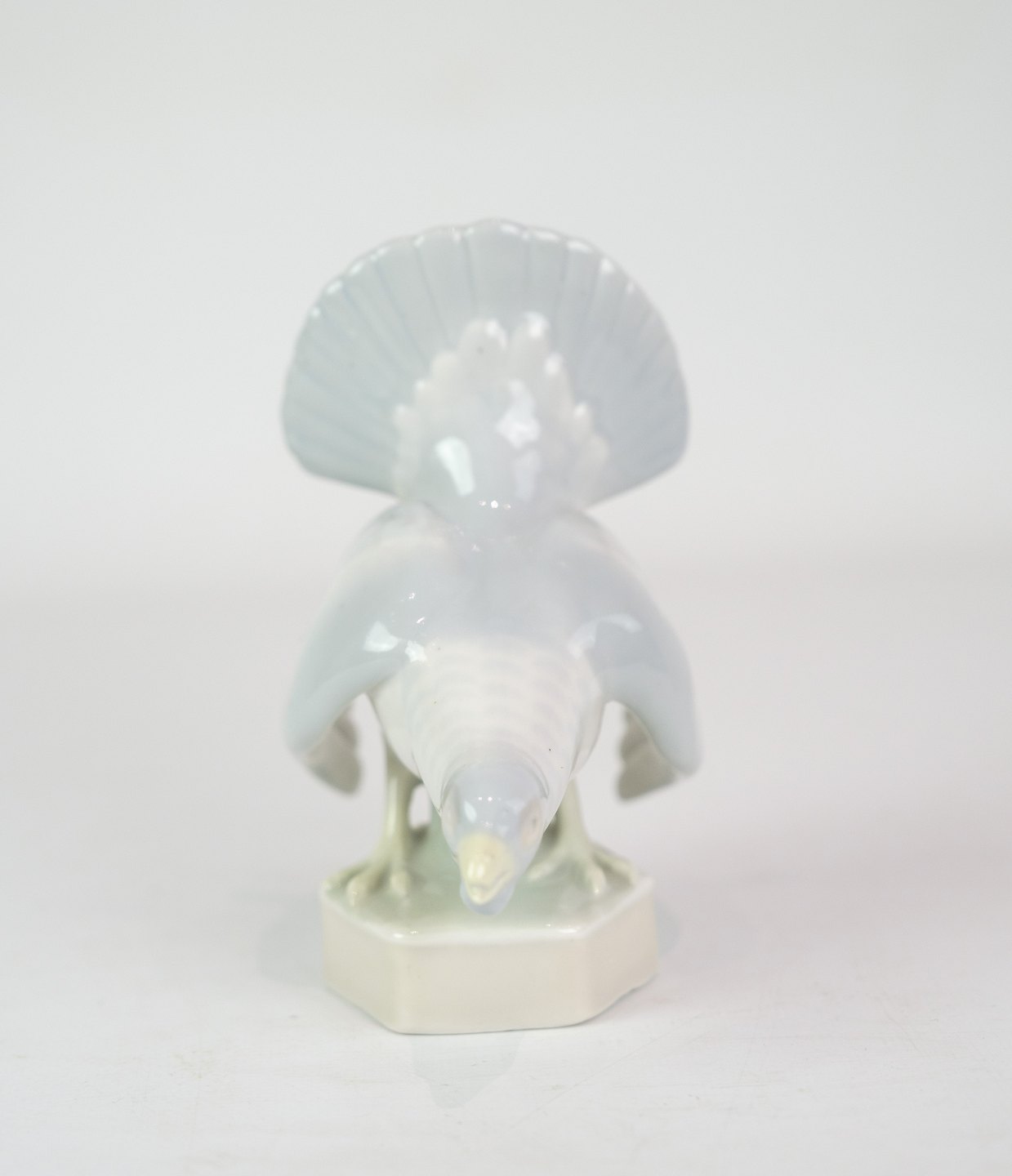 Figur af porcelæn med motiv af en rovfugl på vej til at flyve efter sit bytte.