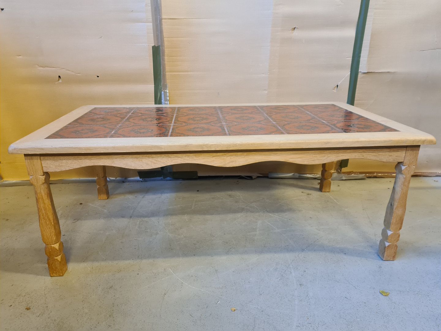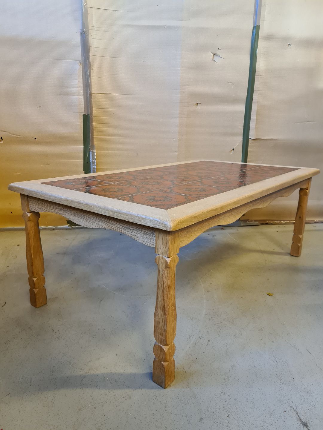 Sofabord i massivt egetræ med kakler, fra 1980erne.