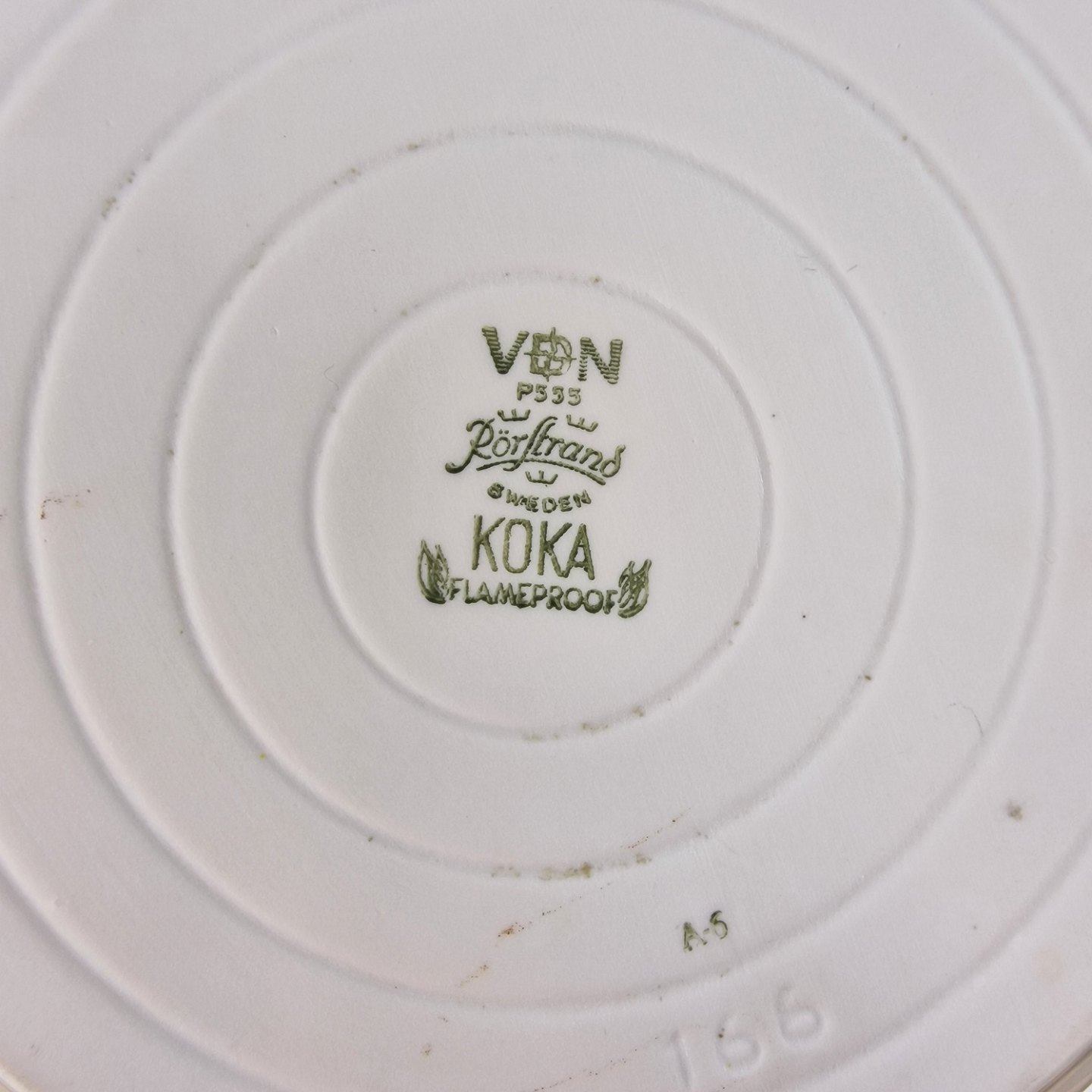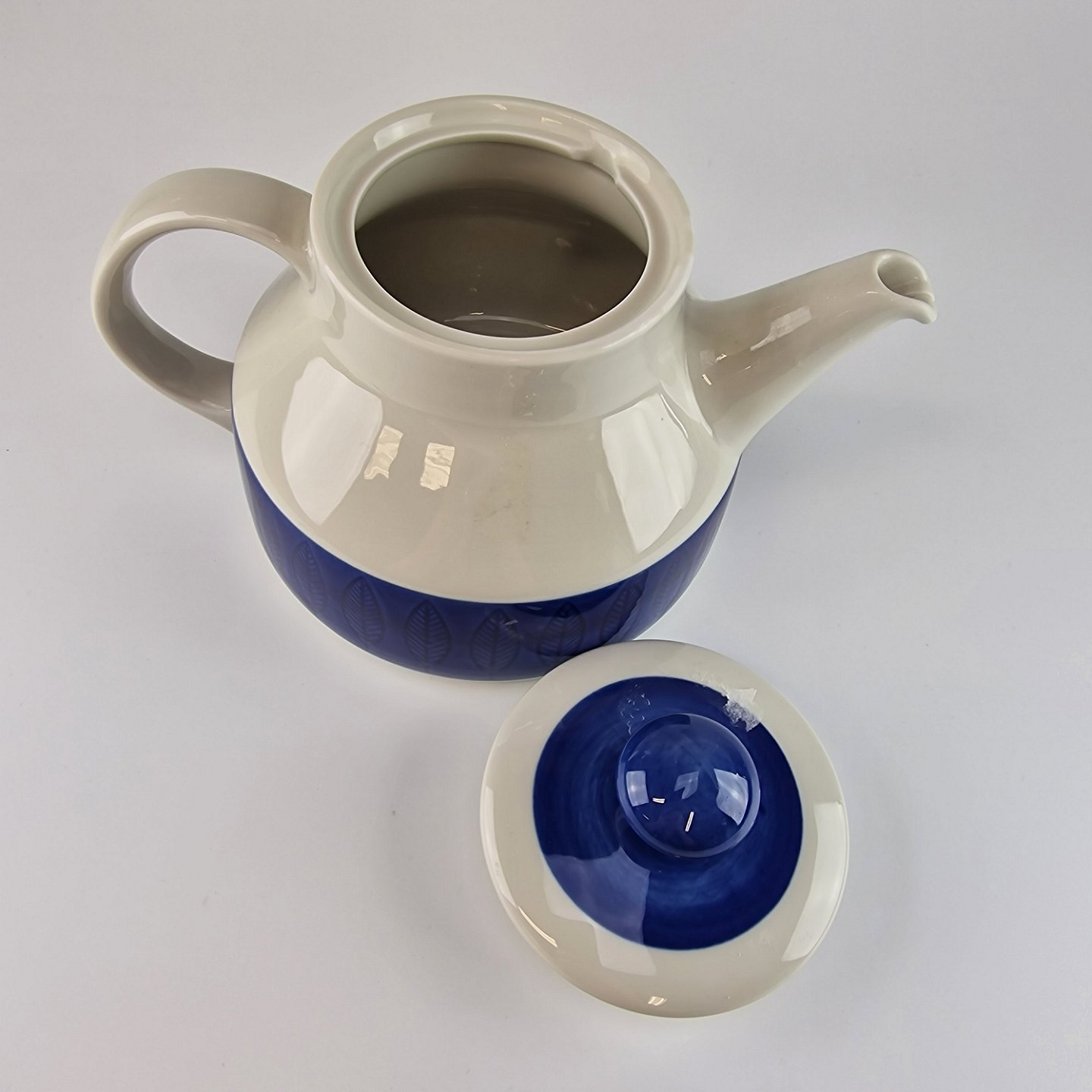 Blå Koka er af hvidt glaseret porcelæn med et bånd af mørk blå