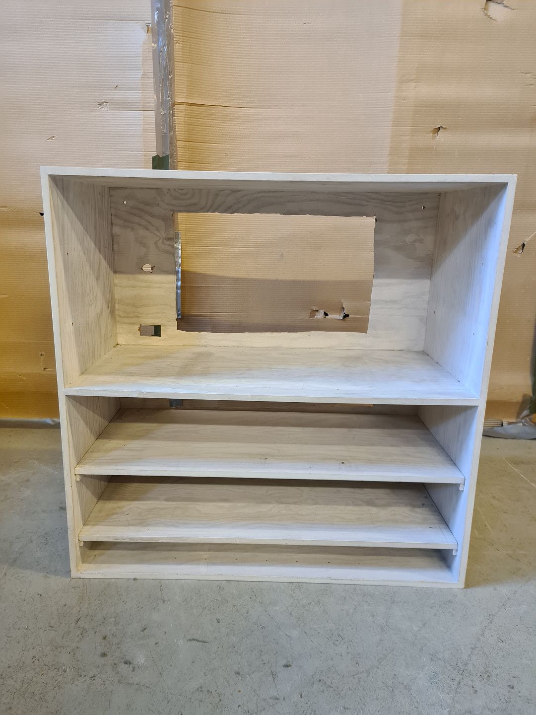 Bogkasser i malet krydsfiner, fra 1990erne.
