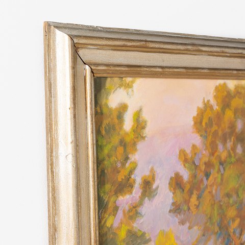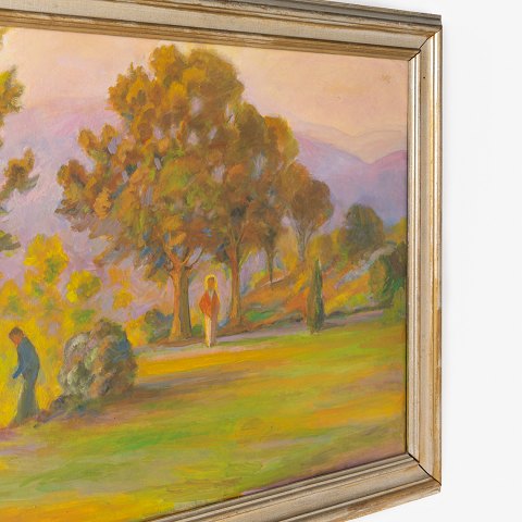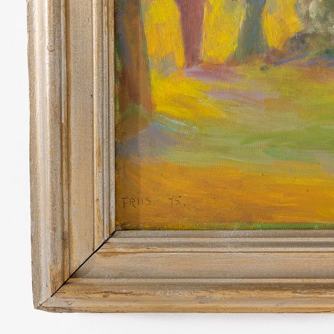 Maleri. Personer i skoven med ramme i træ. Signeret.