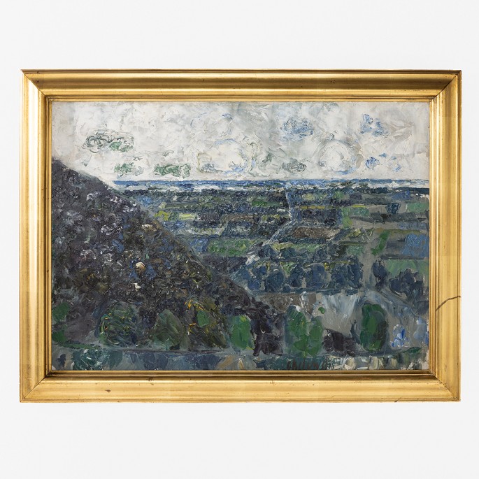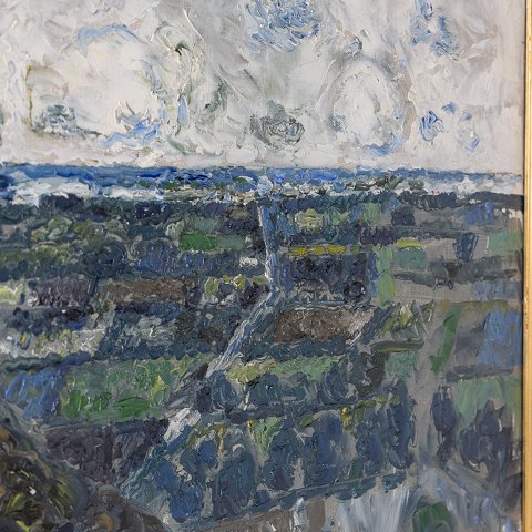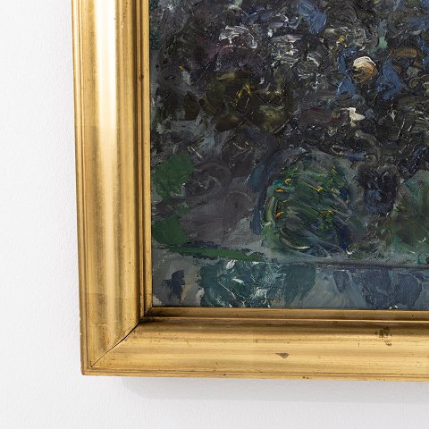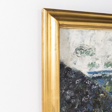 Olie på lærred. Landskab med guldbemalet ramme. Signeret.