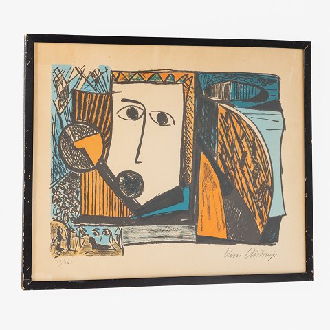 Litografi. Orange ansigt med sort ramme. 319/325. Signeret. Note på bagsiden.