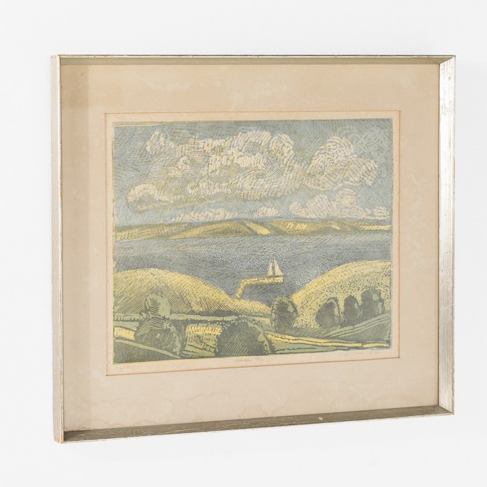 Maleri. Landskabet Thy med sølvramme fra 1977. Signeret.