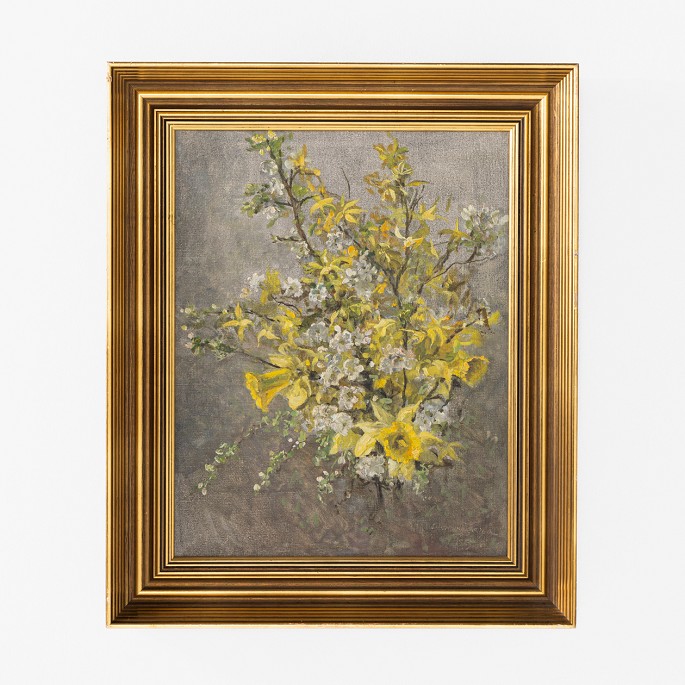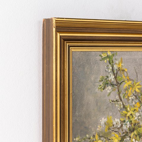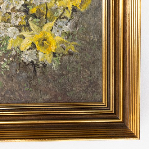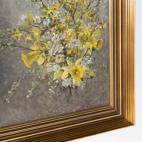 Maleri. 'Buket med påskeliljer', med guldbemalet ramme. Signeret.