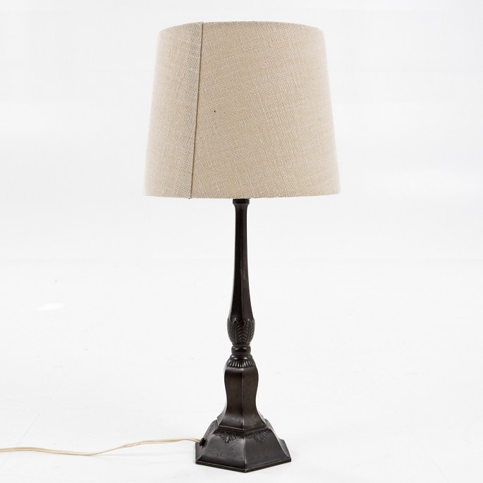 Bordlampe i diskometal med lys skærm.