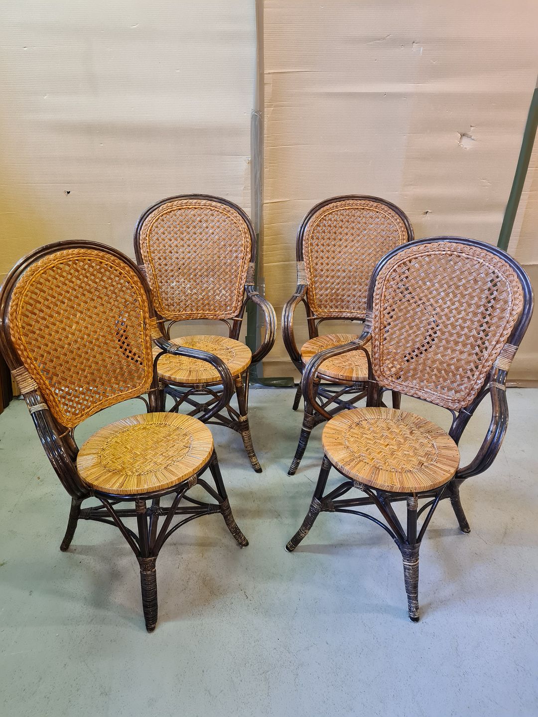 4 Armstole i kurveflet og bambus, fra 2000erne.