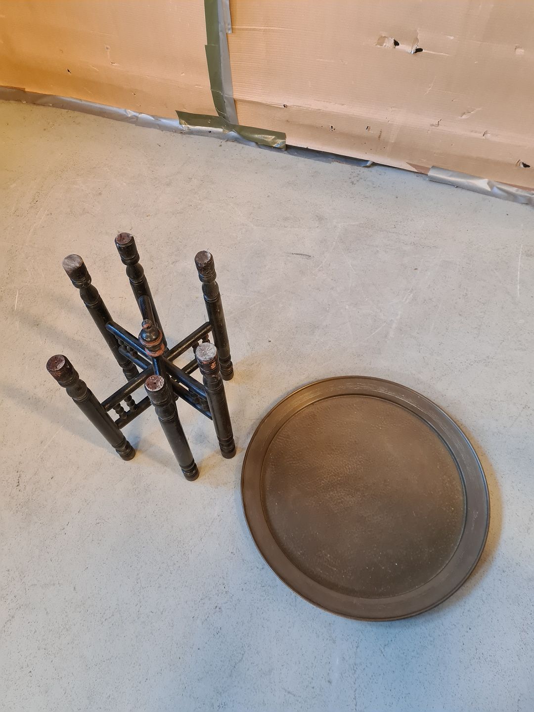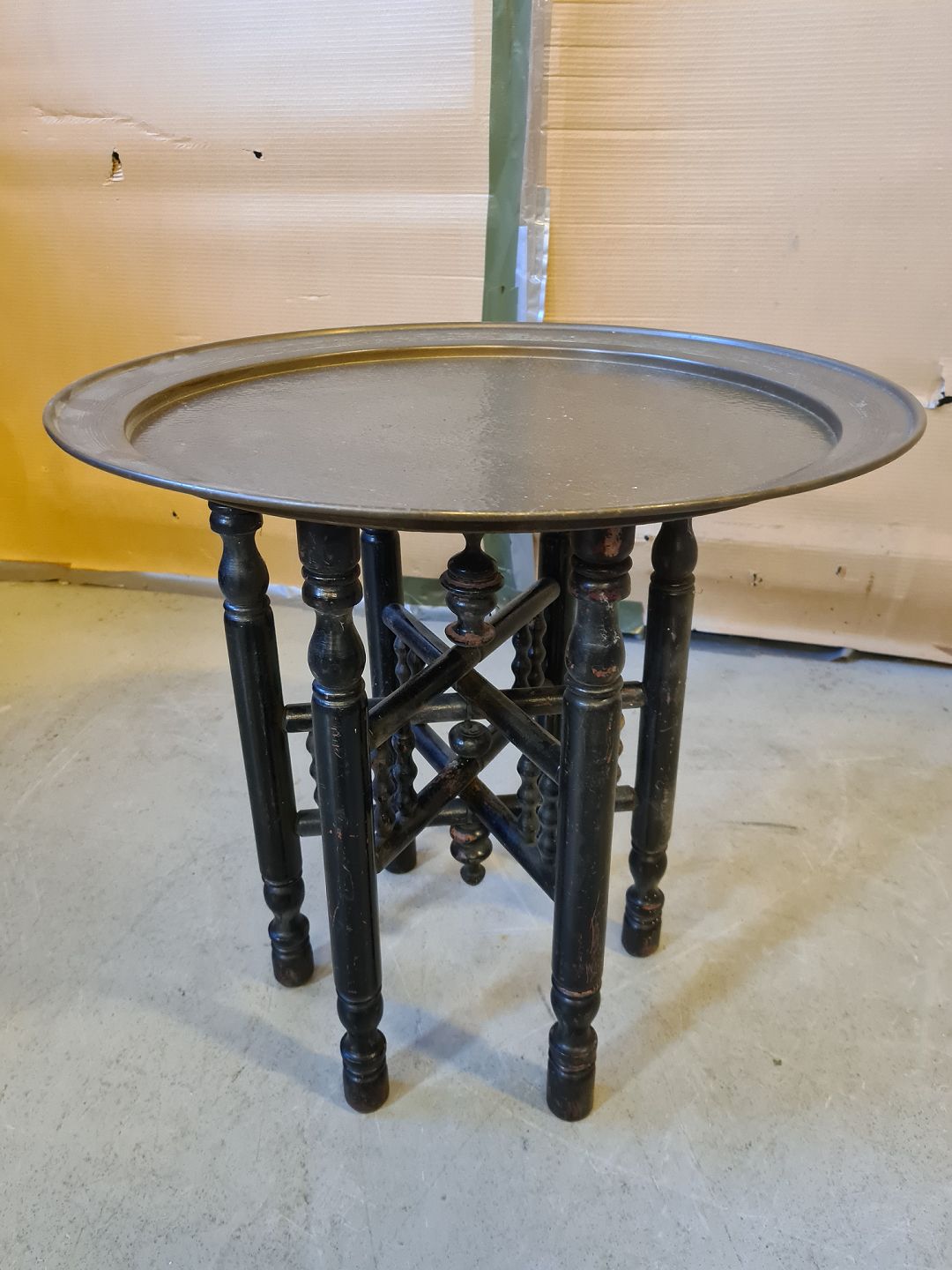 Bakkebord i malet træ med messingbakke, fra 1980erne.