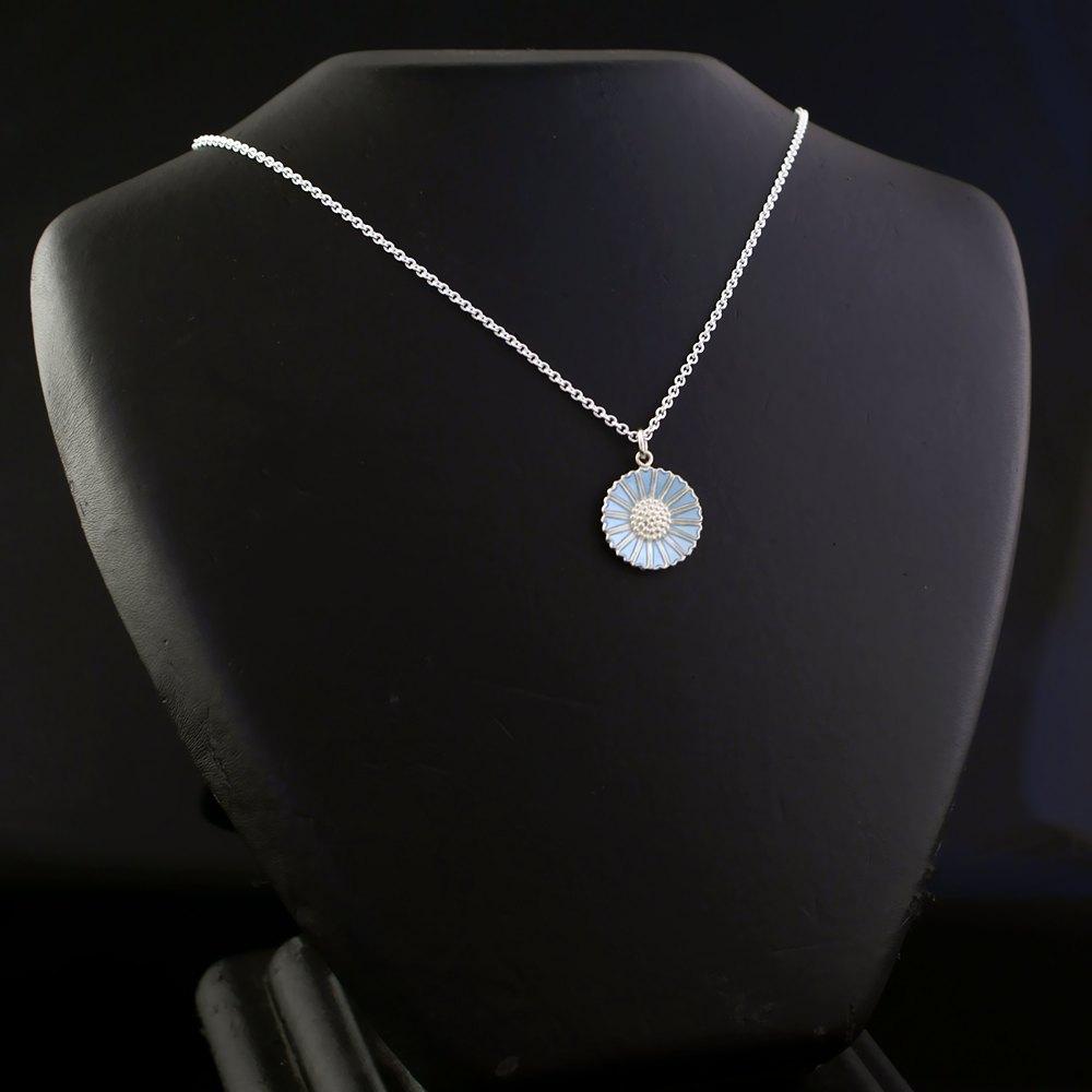 Bernhard Hertz. Marguerit / Daisy Vedhæng i Sterling sølv med blå emalje. 18mm.