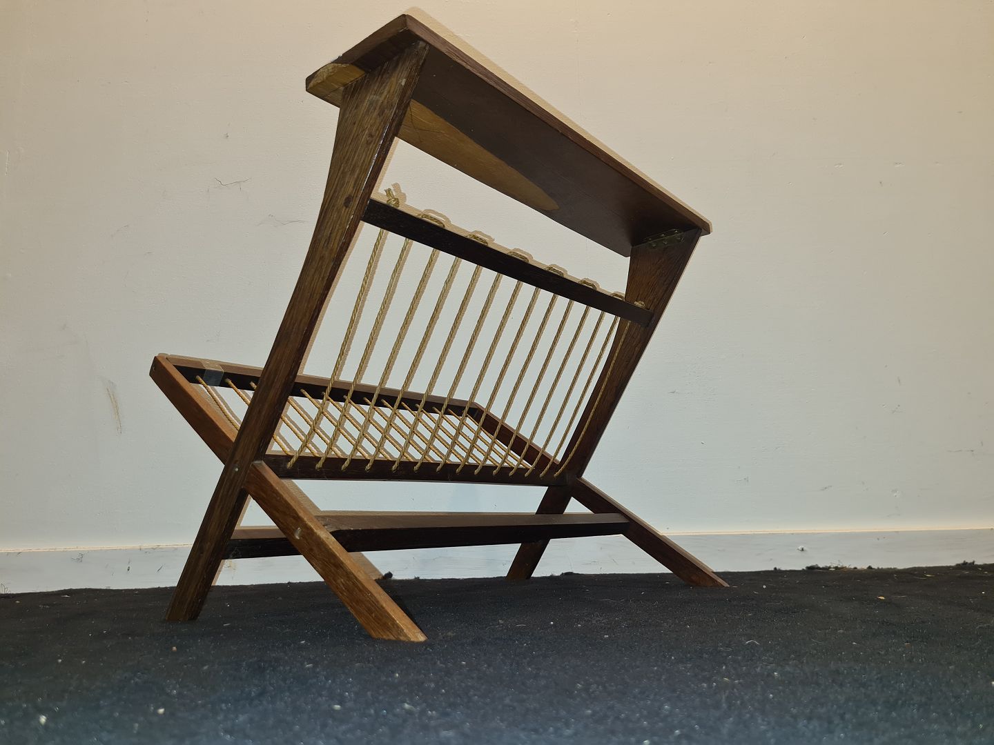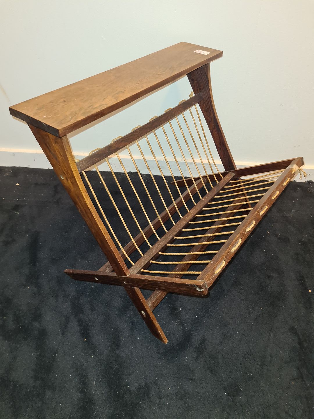 Avis og magsinholder i palisander. Fremstår ok pæn og velholdt. Dog er snor i højre side fastgjort med tape. (billede)