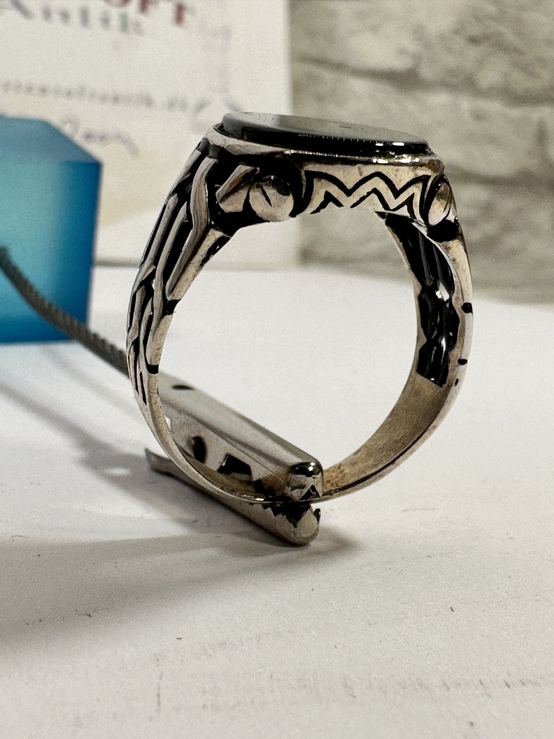 Sterling sølv herre ringe 925 s , sammen med store onyks rund sten . Str 64 .