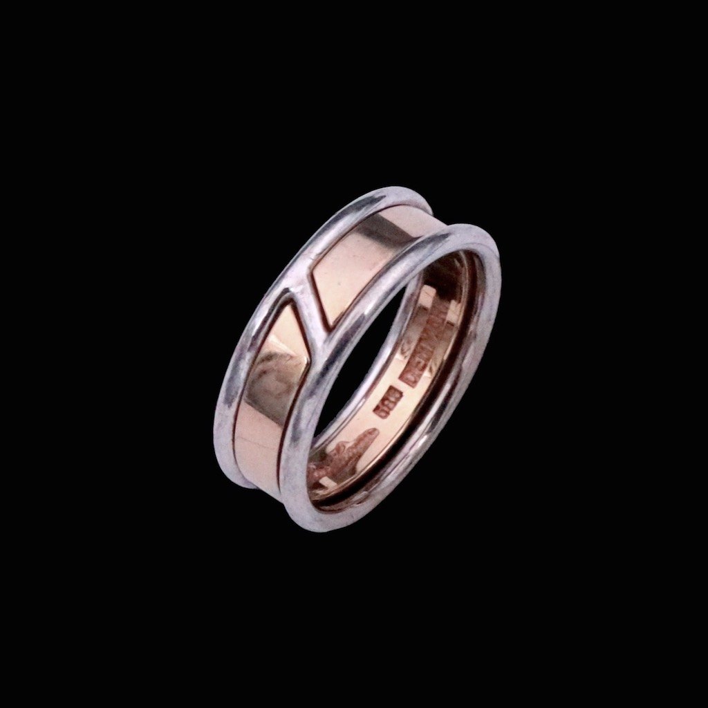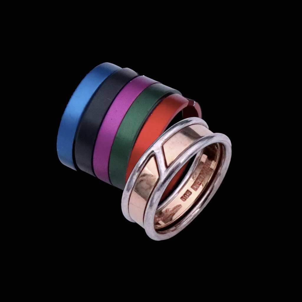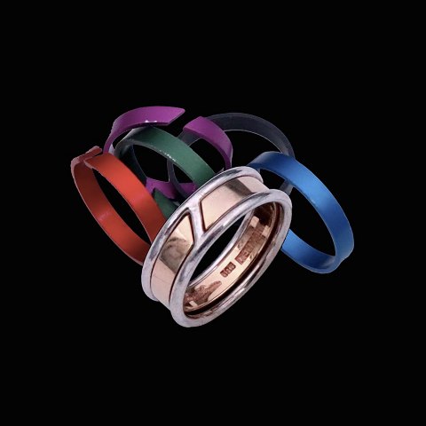 Hans Hansen. Ring 14k guld og hvidguld med udskiftelige midterbånd i farvet aluminium. #20325.