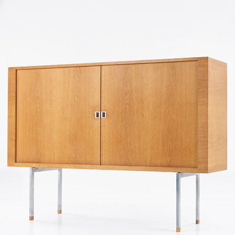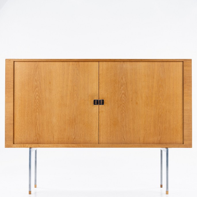 RY 25 - Høj skænk i patineret eg med jalousidøre og. beaf metal med fødder i eg.