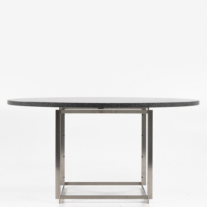 PK 54 - Rundt spisebord med plade i mørkegrå granit og stel af stål.