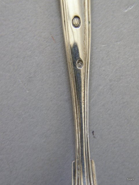 Dobbeltriflet Saltske sølv L: 7,8 cm.