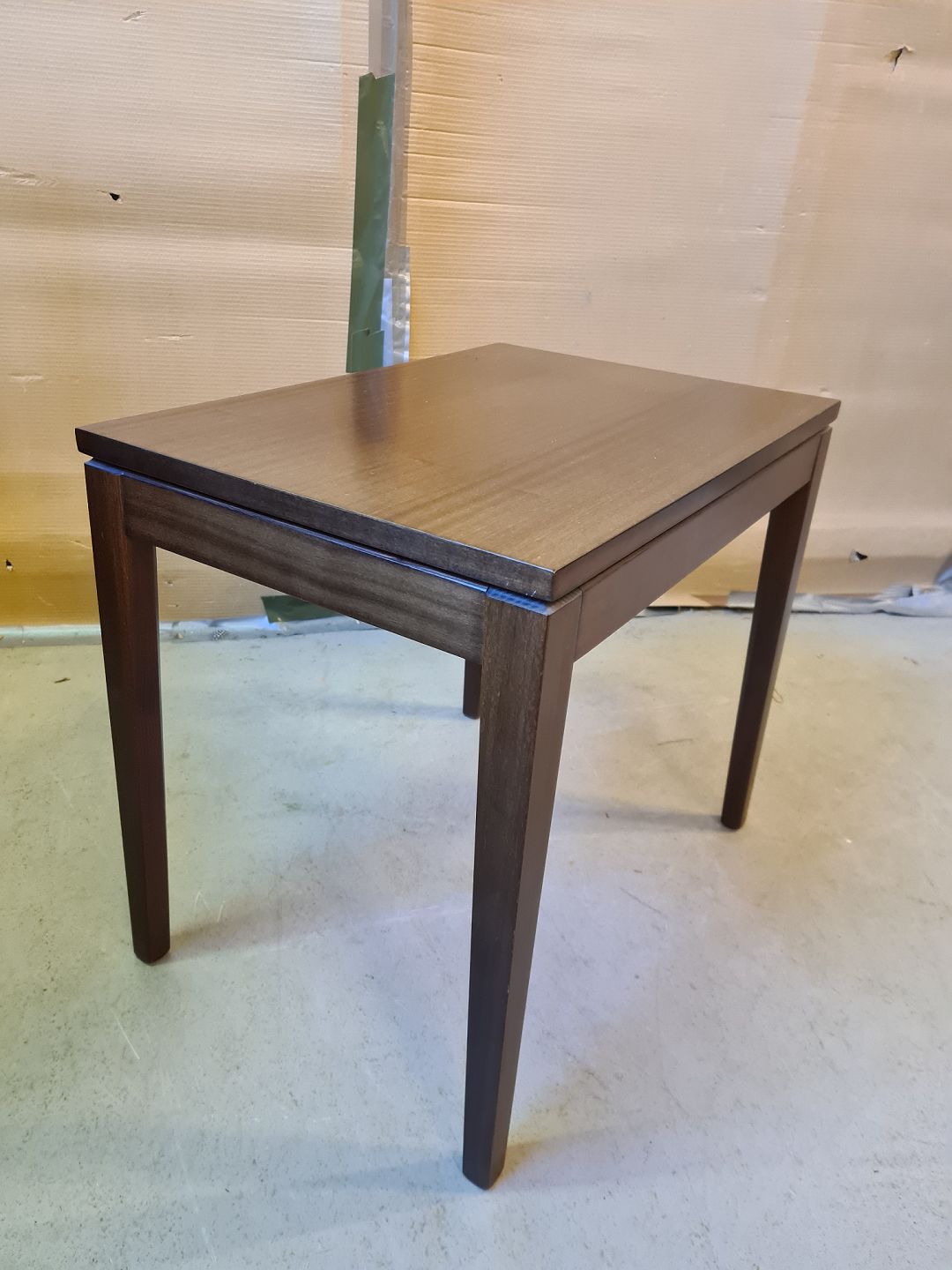 Lampebord i massivt og fineret mahogni, fra 1980erne.