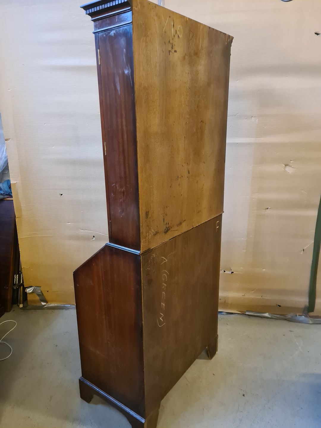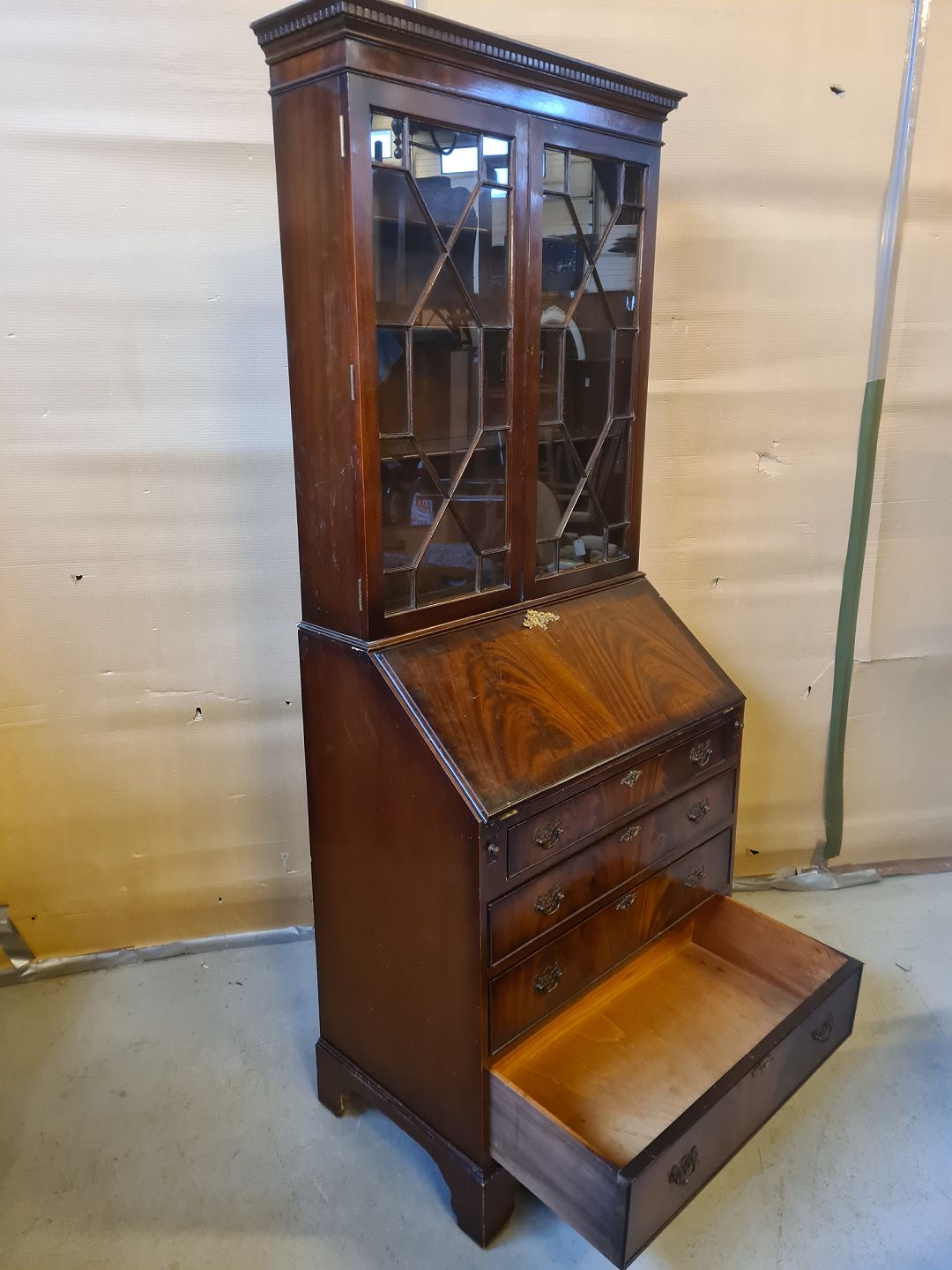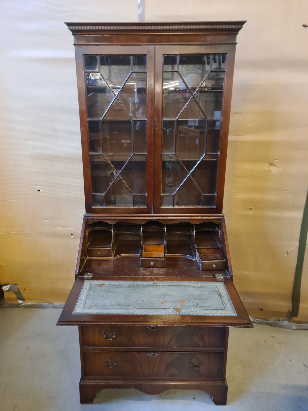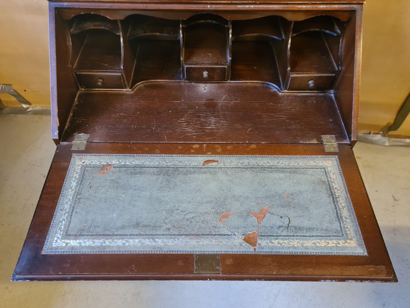 Det har brugsspor og læderindlægget på skriveklappen er defekt.