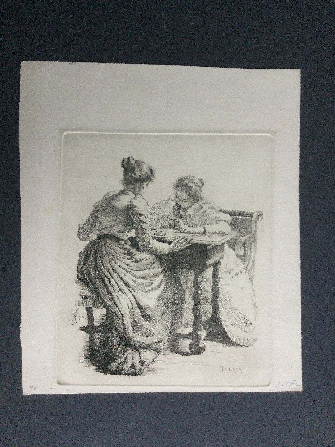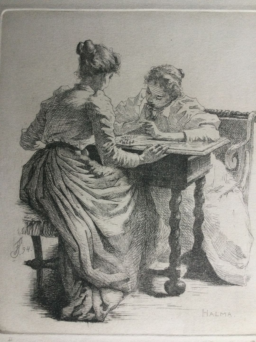 2 kvinder der spiller Halma - Halmaspillerskerne 1894.