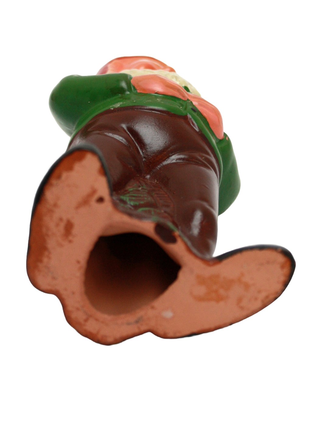 Fra Tyskland, Bemalet terracotta nisse stående. Fra 1950'erne. Højde 25,5 cm. Flot stand med lille glasurafskalning på huen. Pris: 700 kr.