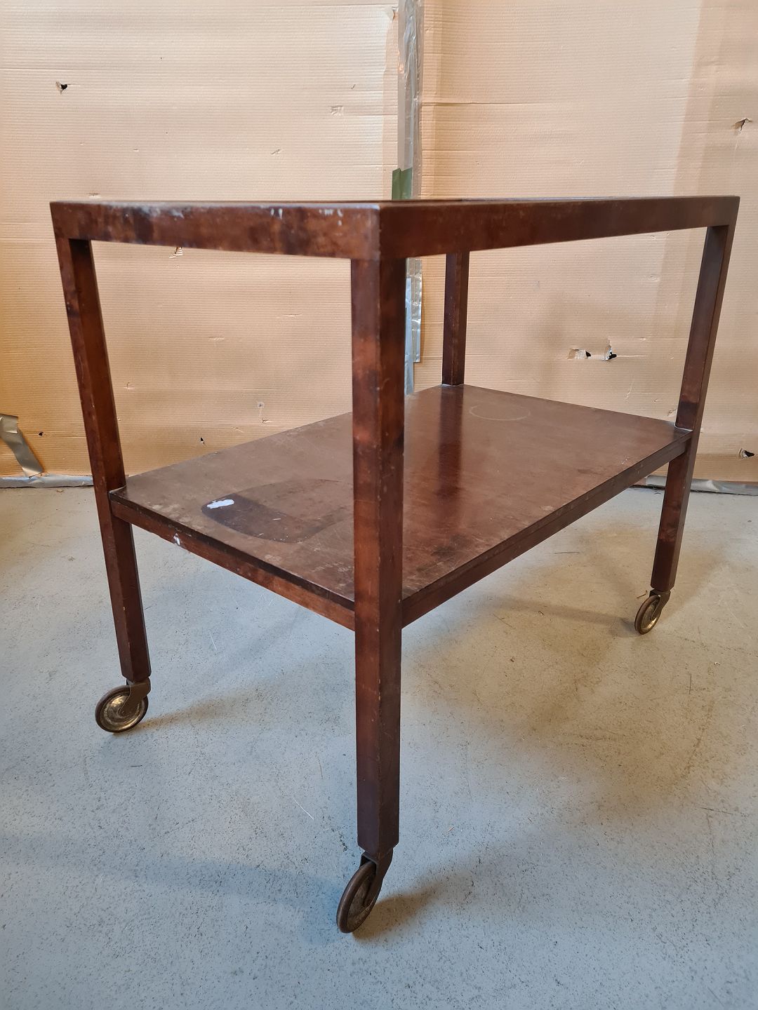 Rullebord i massift birketræ med glasplade, fra 1930erne.