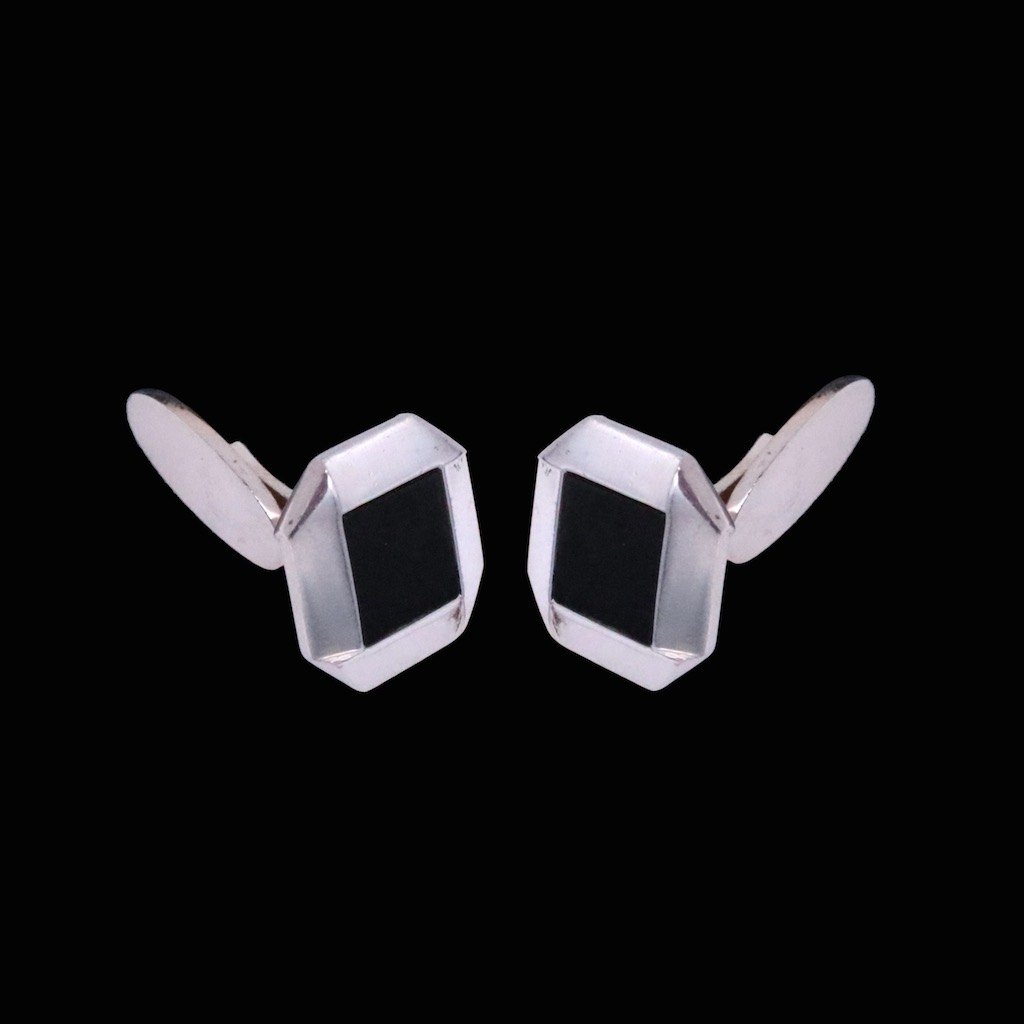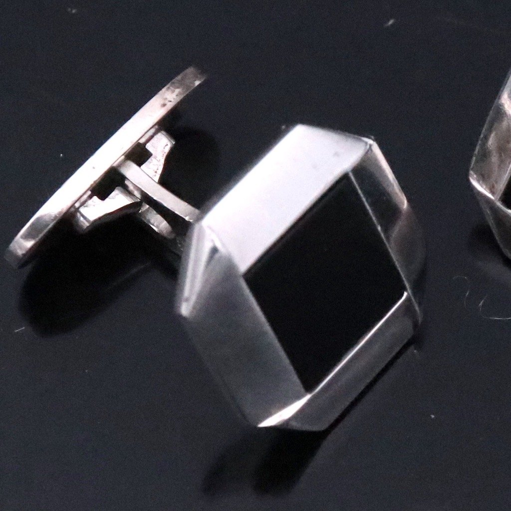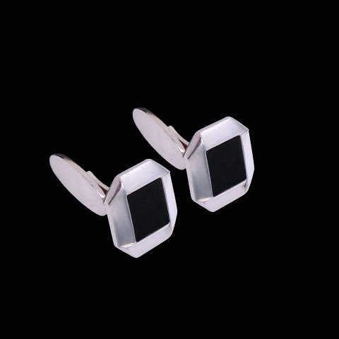Georg Jensen Manchetknapper i sterling sølv med Onyx #202 Piazza. - Allan Scharff.