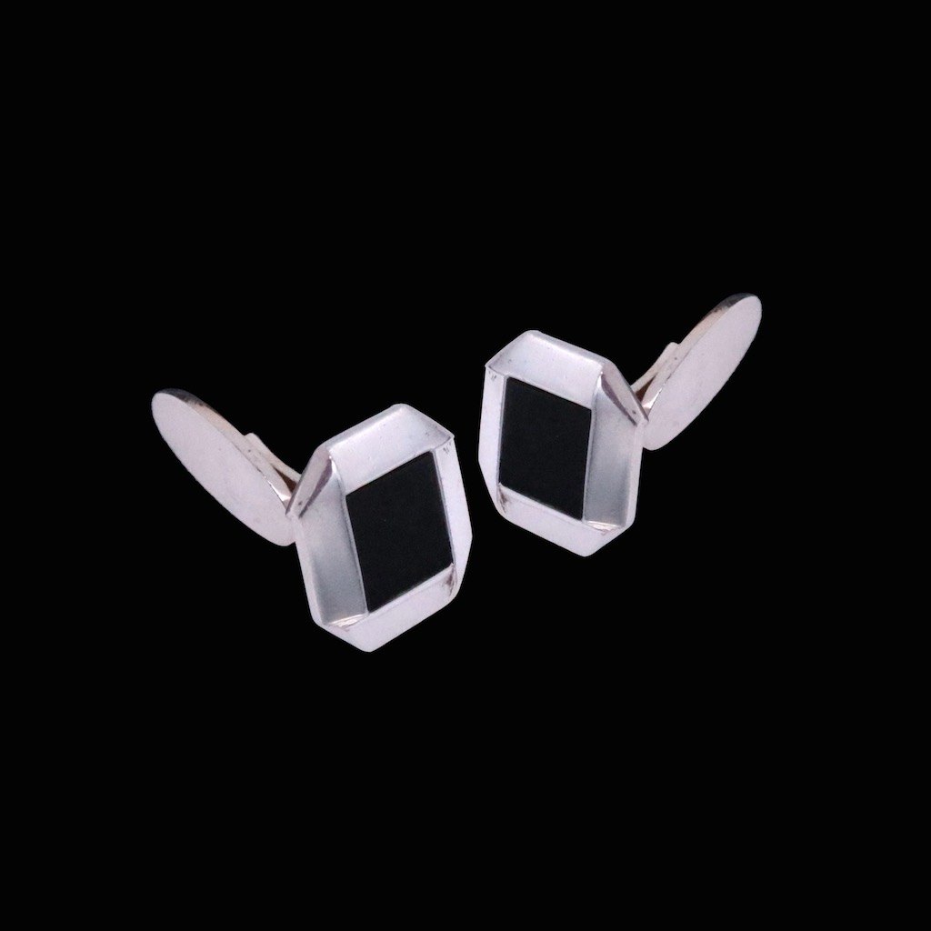 Georg Jensen Manchetknapper i sterling sølv med Onyx #202 Piazza. - Allan Scharff