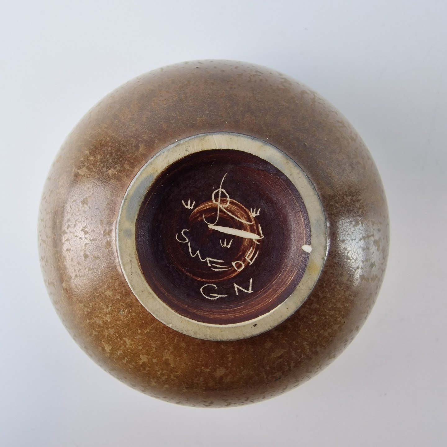 Skål med bølgende kant. Af keramik med brunlig glasur