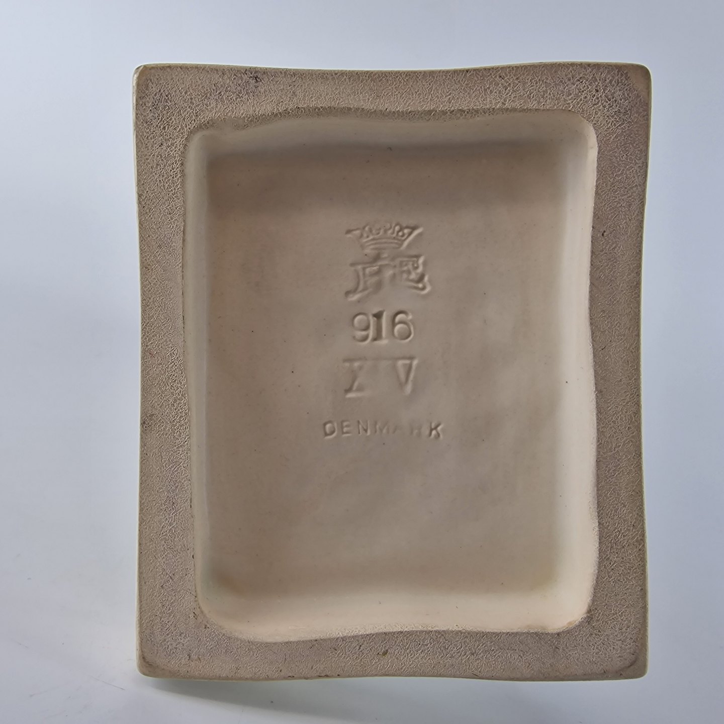 Cremefarvet keramik figur af en pige, som tager sig til sit øre. No 916