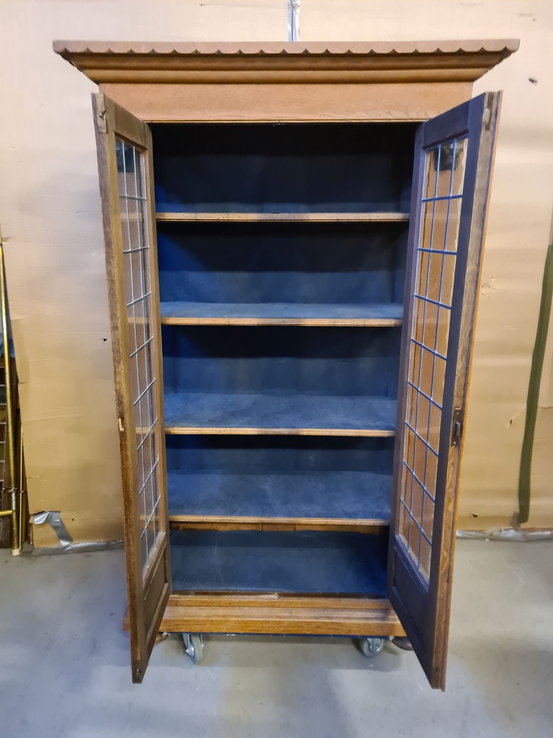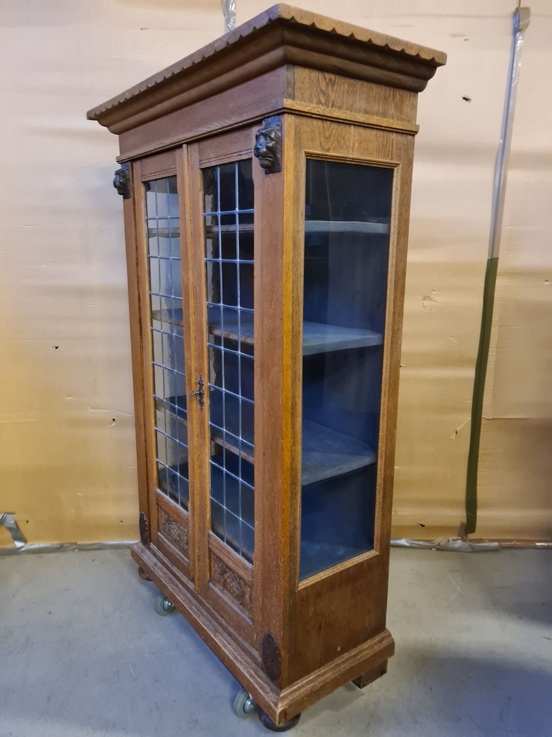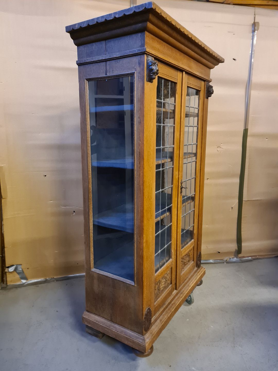 Vitrineskab i fineret egetræ, fra 1930erne.