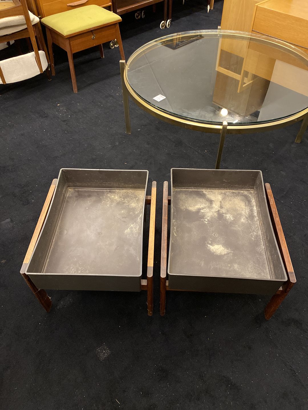 2 blomsterkummer i palisander med plastikkasse. Fremstår brugbare og udmærket stabile dog med lidt brugsspor i nede i kasserne.