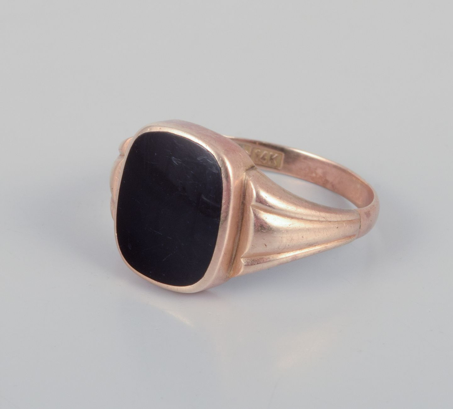 Henry Roland, Danish goldsmith. 14 karat gold ring with onyx.