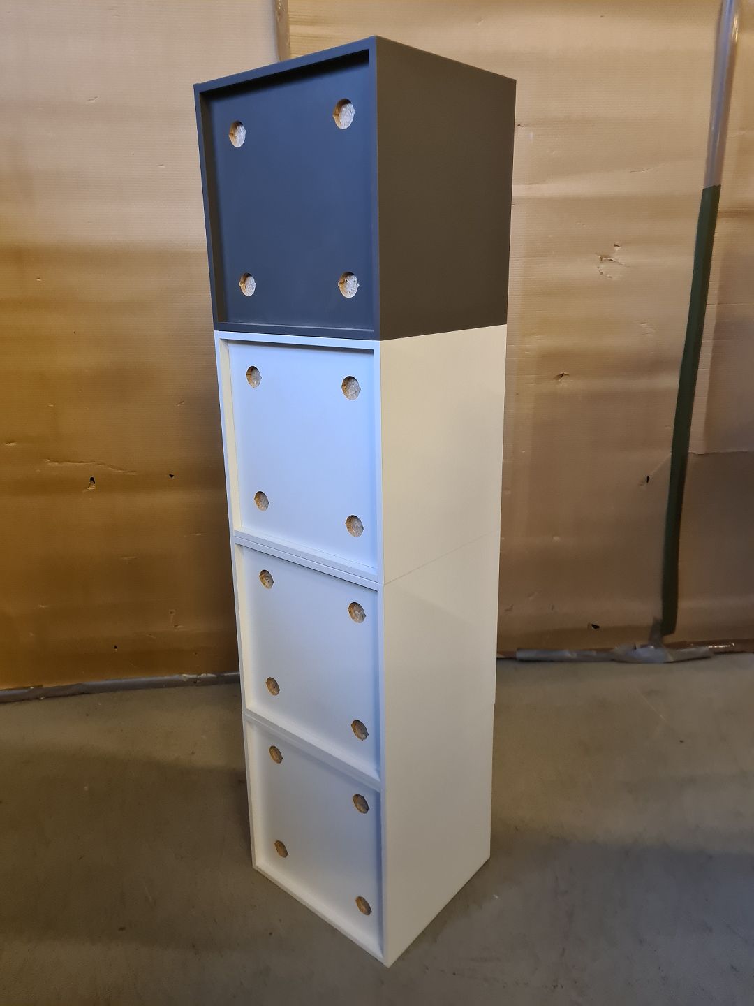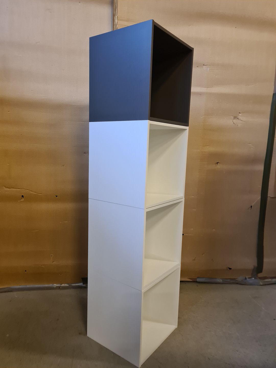 4 Vægreol kasser i laminat, af nyere dato.