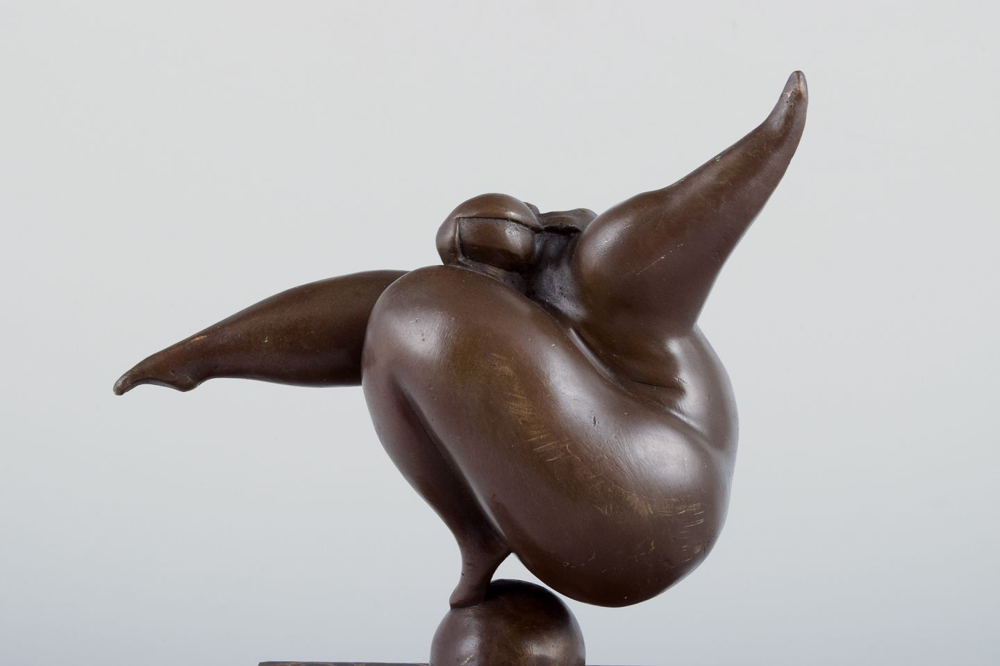 Miguel Fernando Lopez (Milo). Portugisisk skulptør. Abstrakt bronzeskulptur af buttet nøgen kvinde på marmorsokkel.
