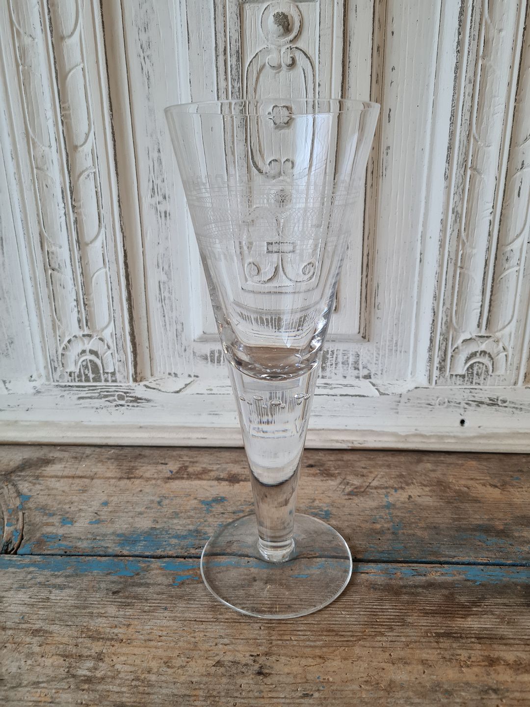Pokal glas fra Kastrup glasværk ca. 1910 dekoreret med slebet bort a la grecque.