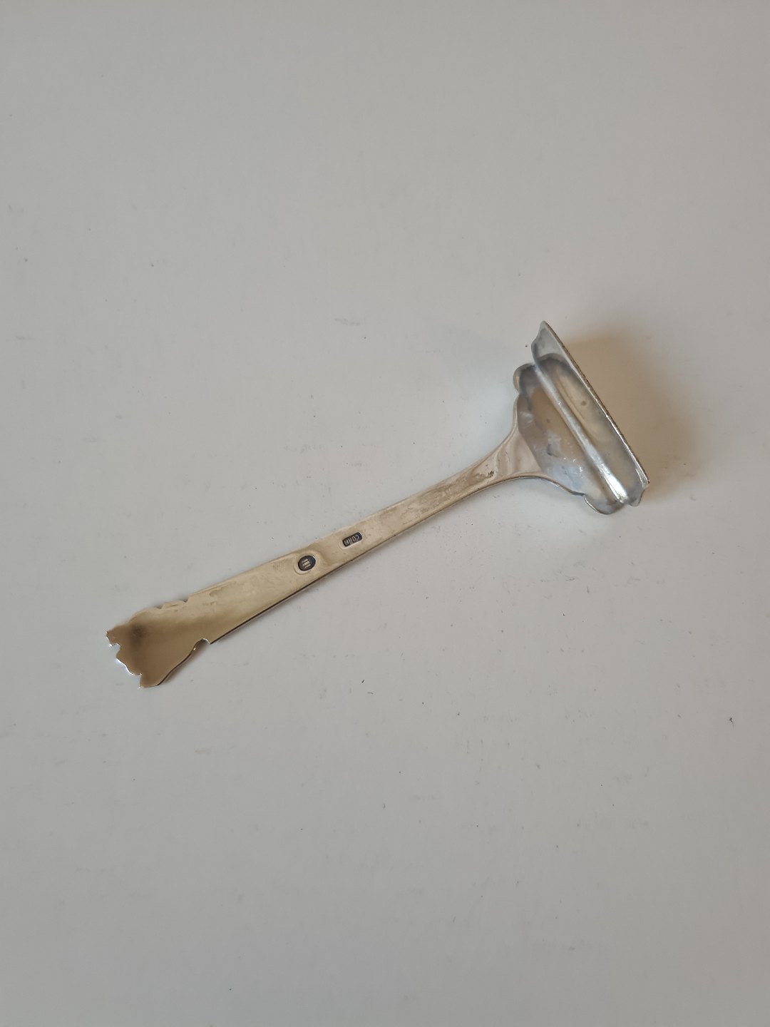 Barnebestik skubber dekoreret med høne og kyllinger i sølv fra 1953