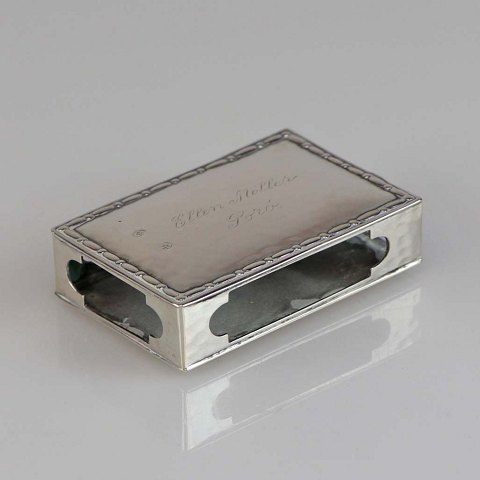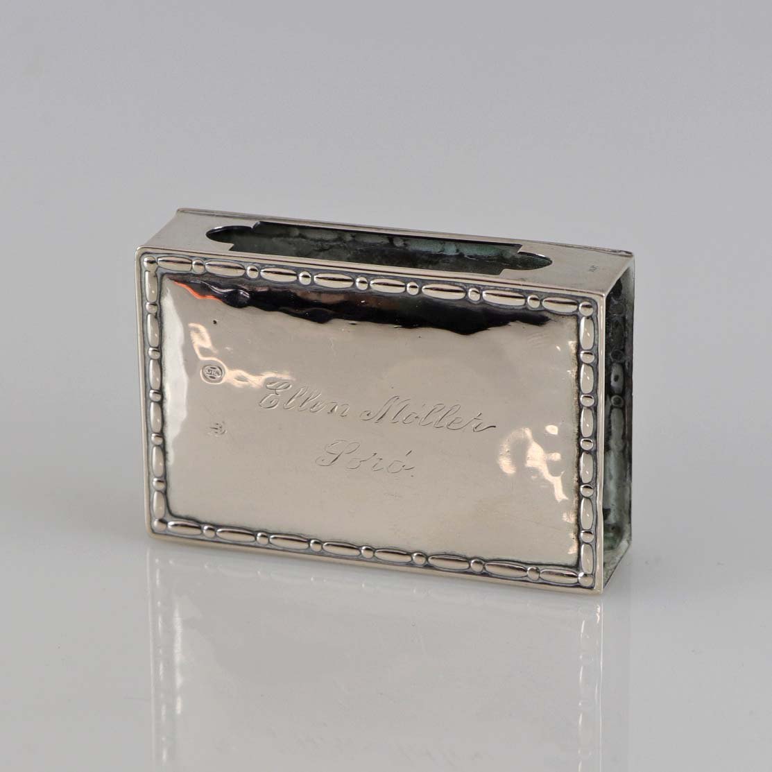 Tændstik etui i tre tårnet sølv med indgraveringen Ellen Møller, Sorø