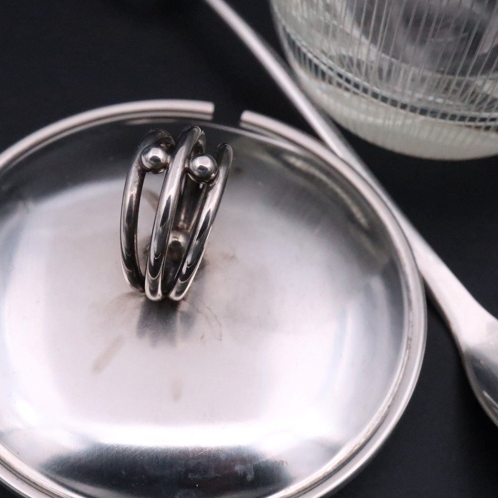 Art deco låg sølv samt ske i sølv tegnet og udført hos C. Antonsen, 1943 - .