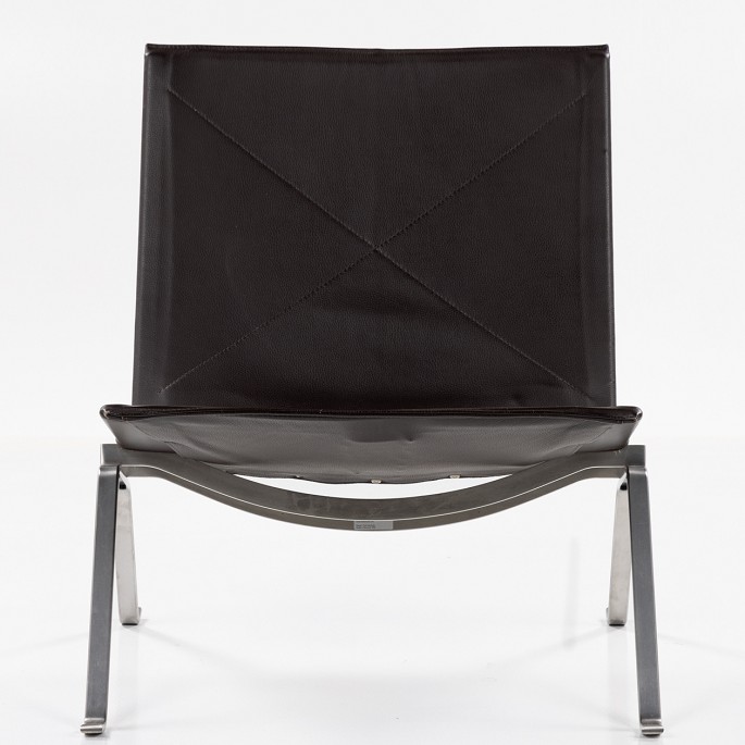 PK 22 - Lænestol i mørkebrunt læder og stel af forkromet stål.