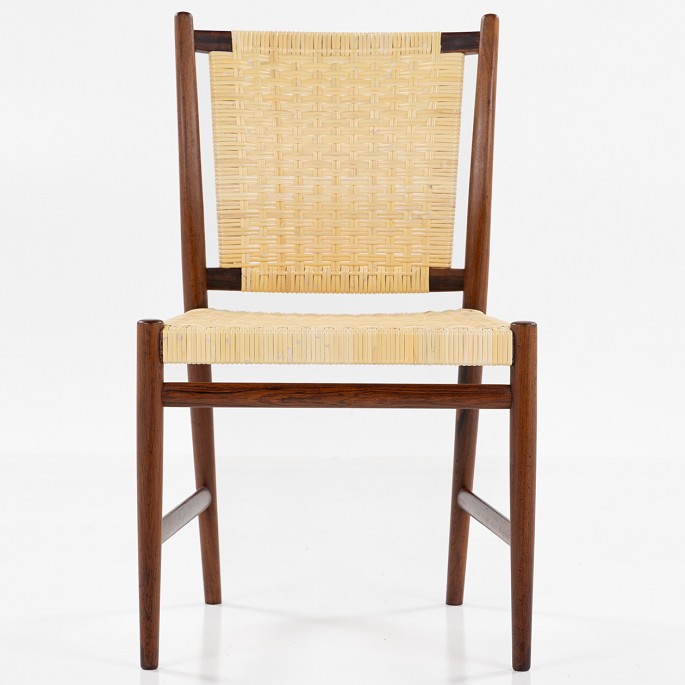 Model A-49 - Sæt á 12 spisestole i palisander med nyt sjeneflet. Designet i 1956.