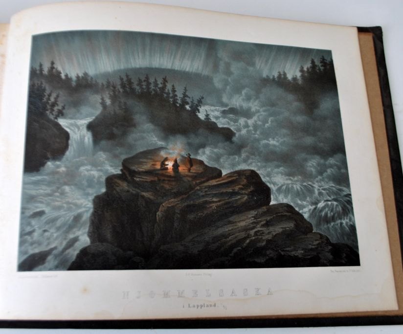 Sverige Framstäldt i taflor - Nittiosex litografier i tontryck med beskrifvande text af Joh. Aug. Berg. Trykt hos Hedlund og Lindskog. Udgivet af D. F. Bonniers Förlag, Göteborg, Sverige. 1856. Med 96 litografier af svenske byer, slotte og naturområder. Forrest indholdsfortegnelse. Indbundet. 194 sider. H: 28 cm L: 37 cm