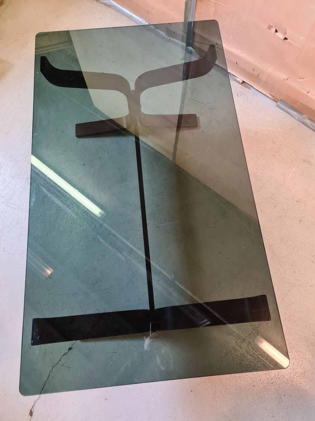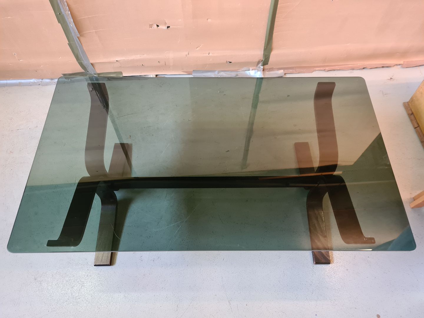 Sofabord i bejdset bøgetræ med glasplade, fra 1990erne.