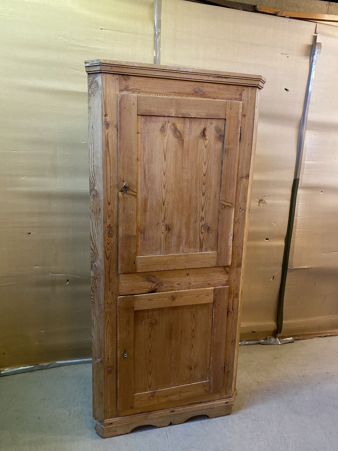 Hjørneskab i massivt fyrretræ, fra 1900erne.