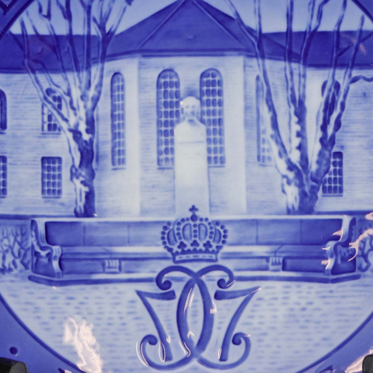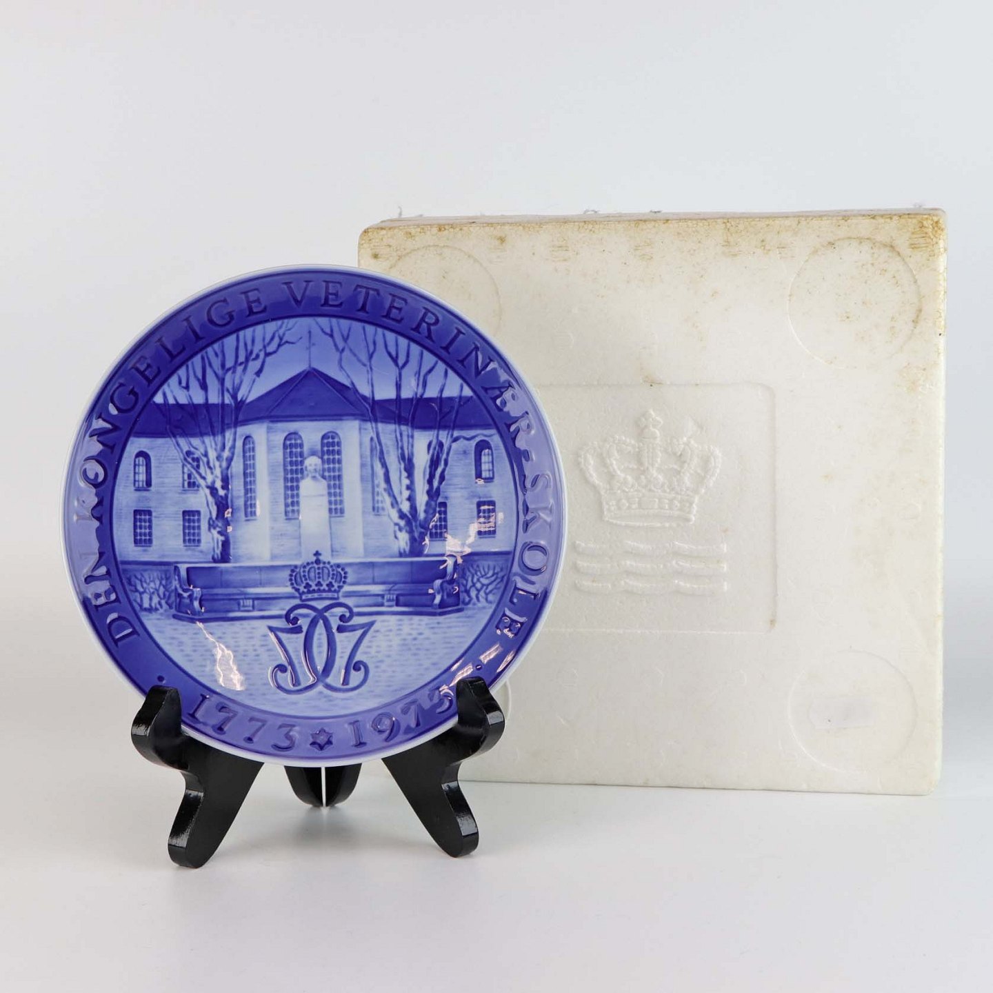 Platte i porcelæn, fremstillet i forbindelse med 200 års jubilæum for den kongelige veterinærskole 1773-1973